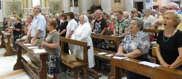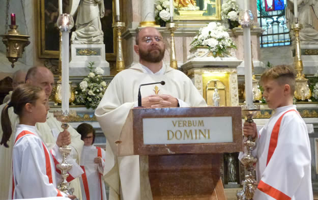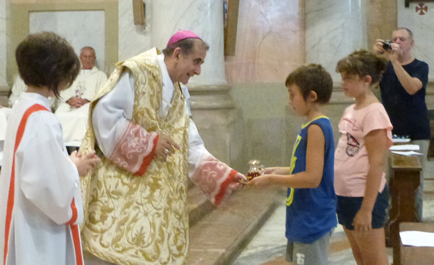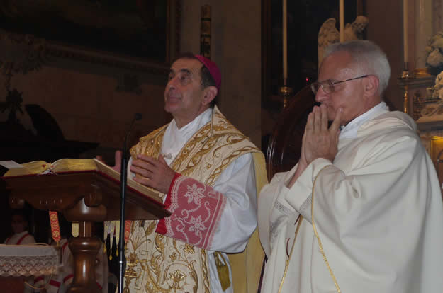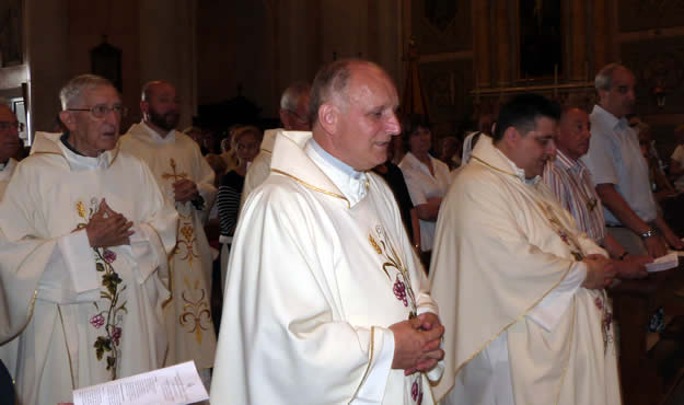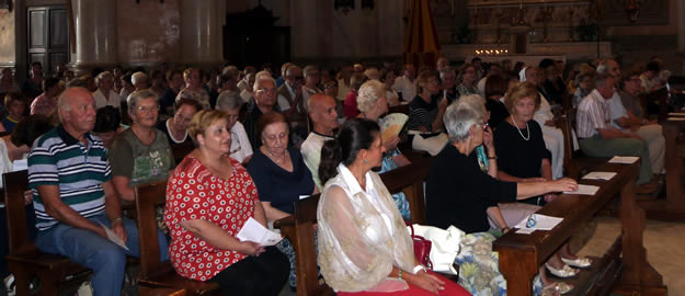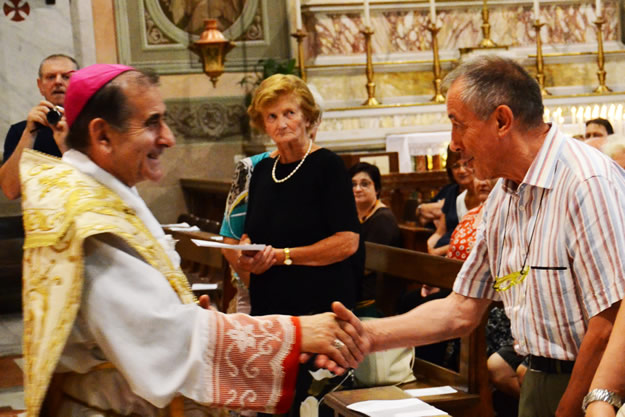 Ad introdurre la liturgia le parole del parroco don Bruno che ha invitato i fedeli a pregare ''perchè la Madonna l'accompagni e sostenga nel compito che gli è stato affidato e che gli conceda sapienza, cuore e così accompagni noi, questo popolo, a seguire Cristo, per la salvezza di tutta l'umanità''.