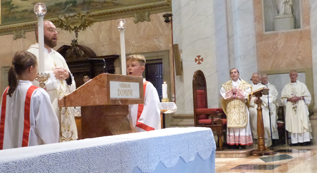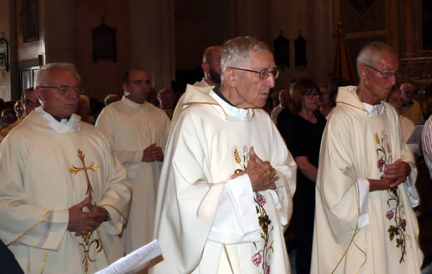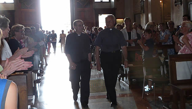 L'ingresso in Basilica con il parroco don Bruno Perego