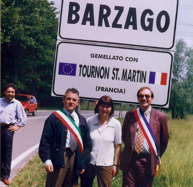 Paola Bosisio tra il sindaco Mario Tentori e il collega francese del comune ''gemello'' Tournon Saint Martin
