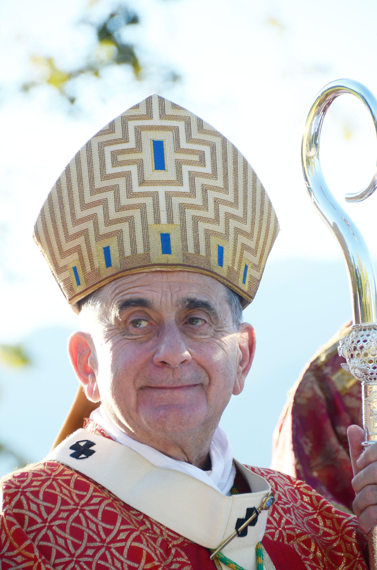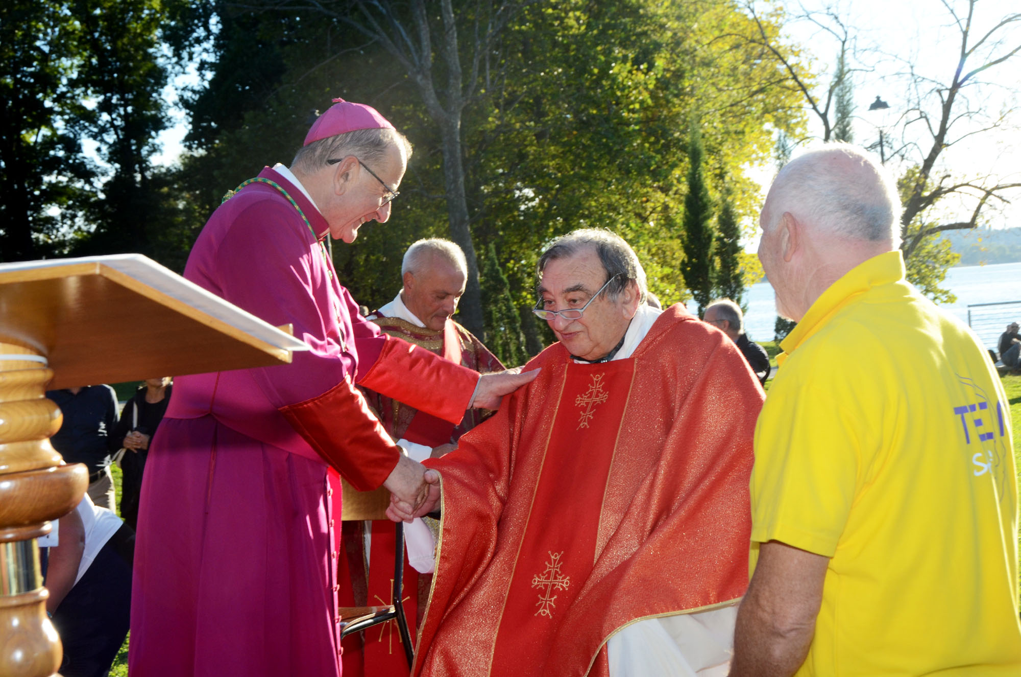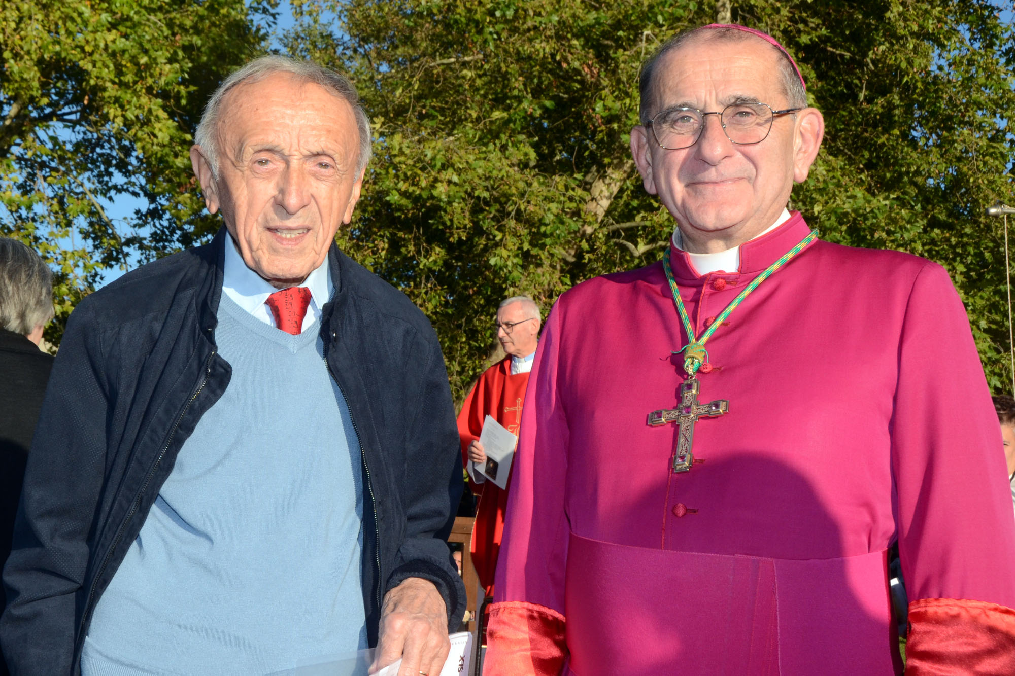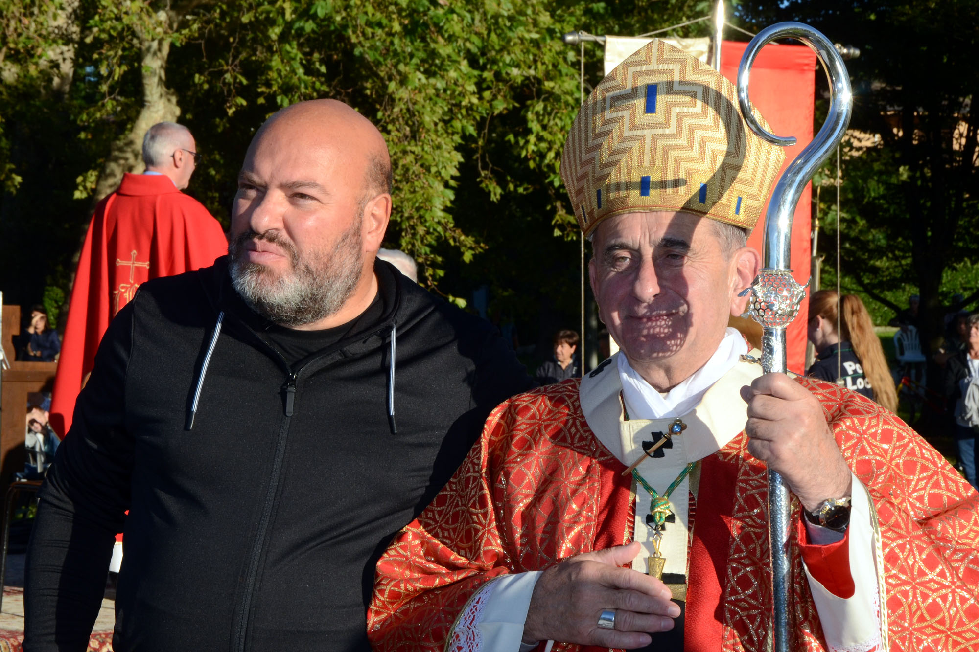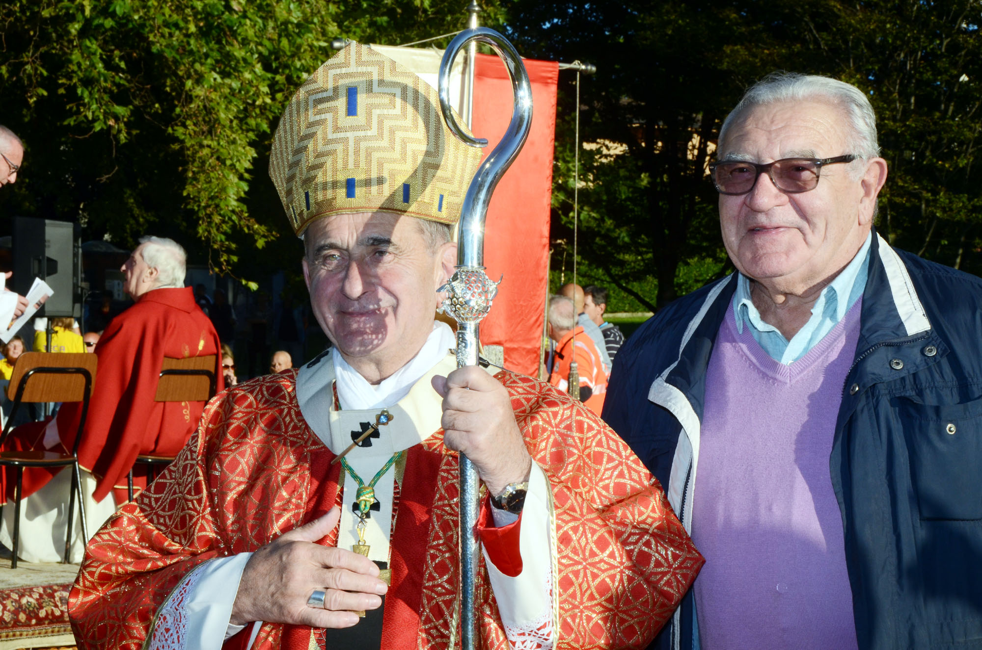Il saluto tra monsignor Delpini e il parroco don Emilio Colombo