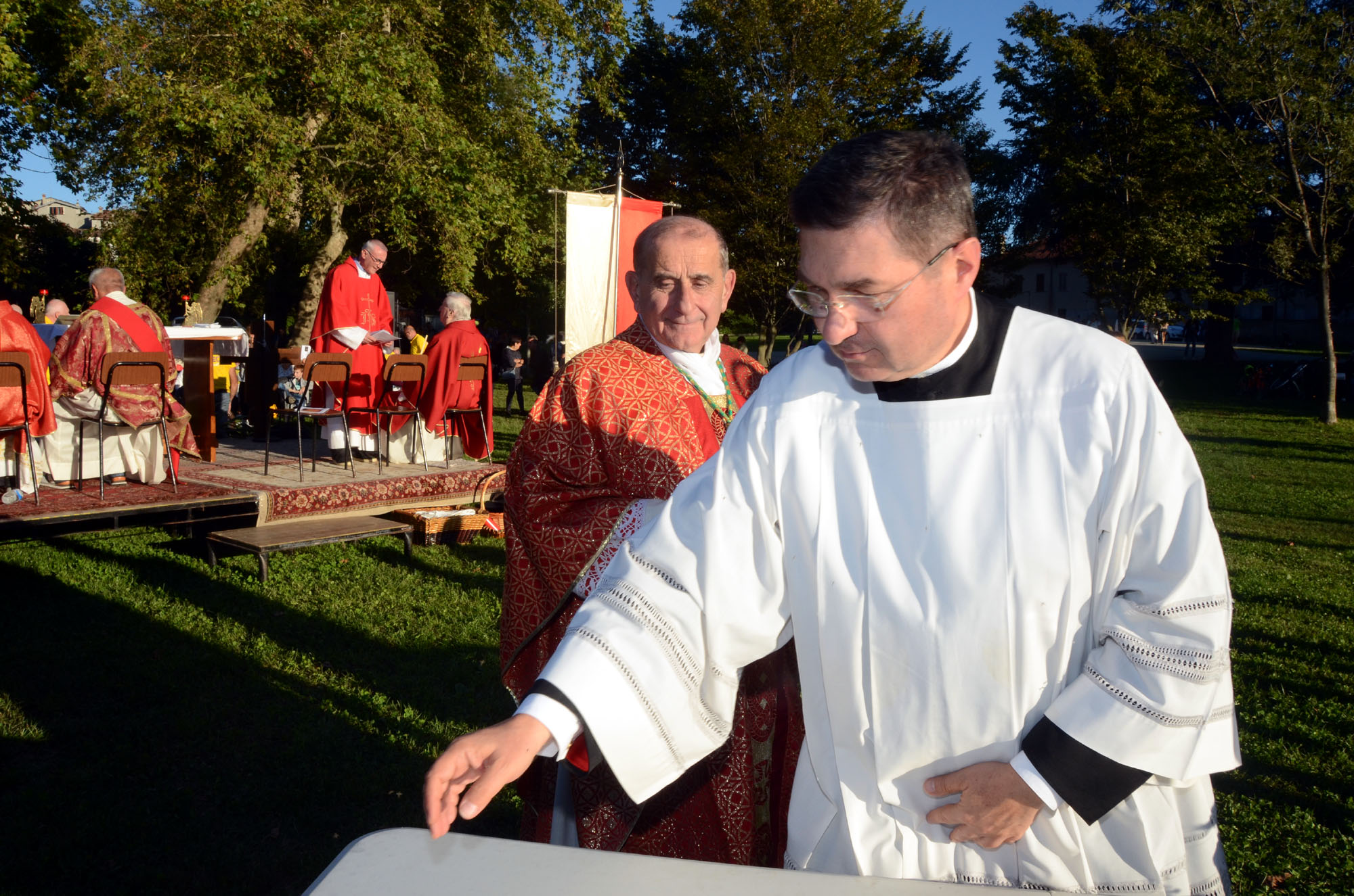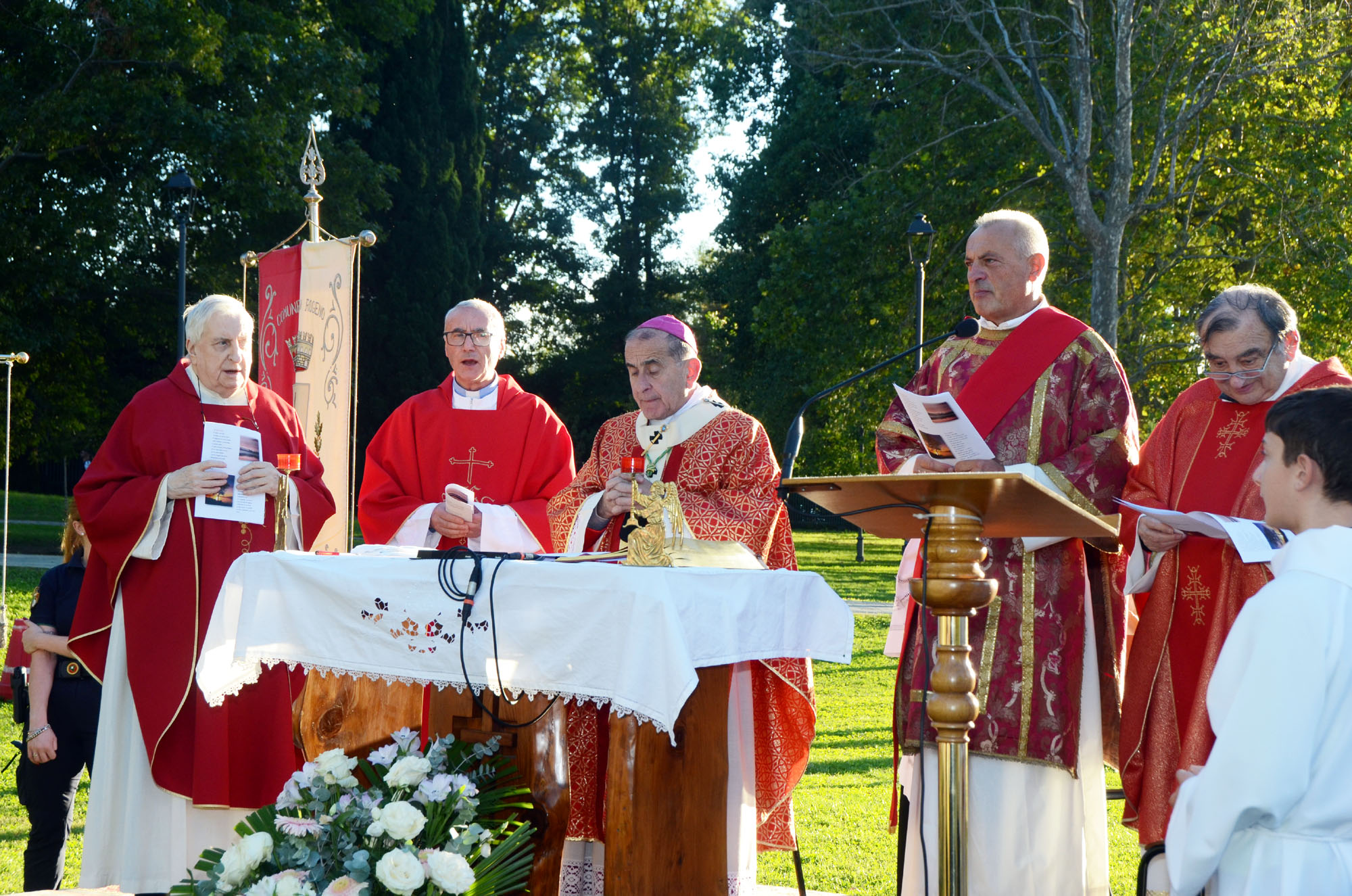 L’eucaristia, iniziata alle ore 18, è stata concelebrata da numerosi sacerdoti. C'erano don Peppino Farioli e don Luigi Colombo, ex parroci delle comunità di Bosisio Parini e Garbagnate Rota, oggi riunite – con Rogeno e Casletto - sotto la guida del neo parroco don Emilio Colombo, ufficialmente insediatosi il 1° settembre. Per il sacerdote si è trattato di una delle prime occasioni pubbliche e solenni per incontrare, tutti insieme, fedeli, autorità e associazioni in un clima di comunione e festa. Presente anche il diacono Piergiorgio Panzeri.