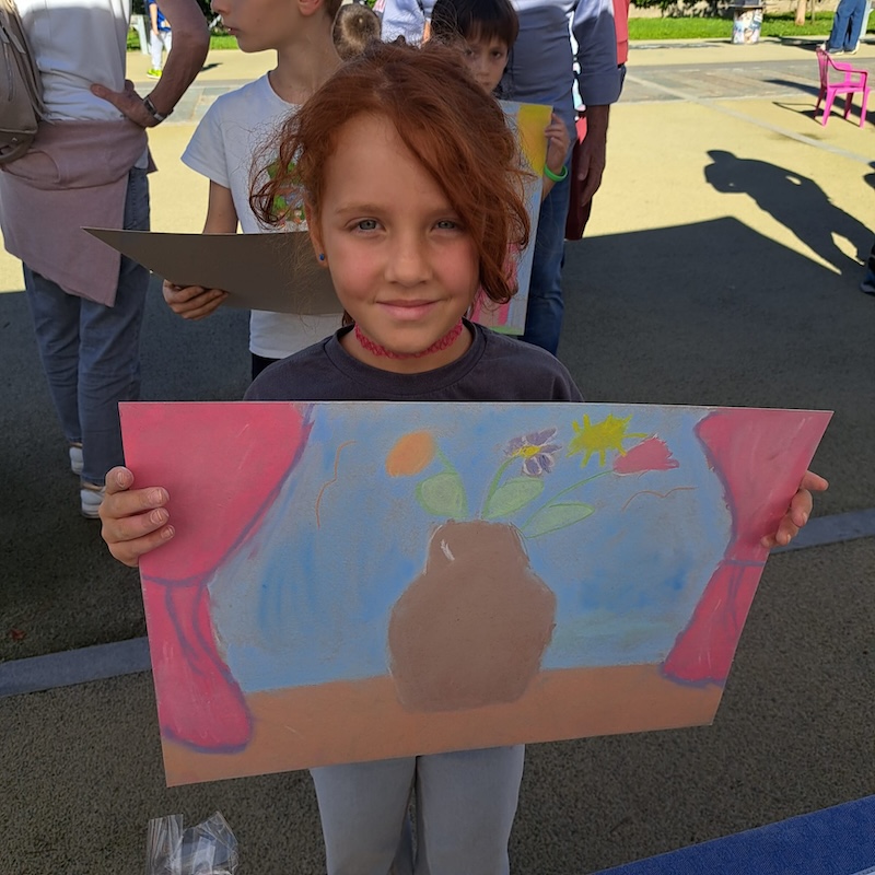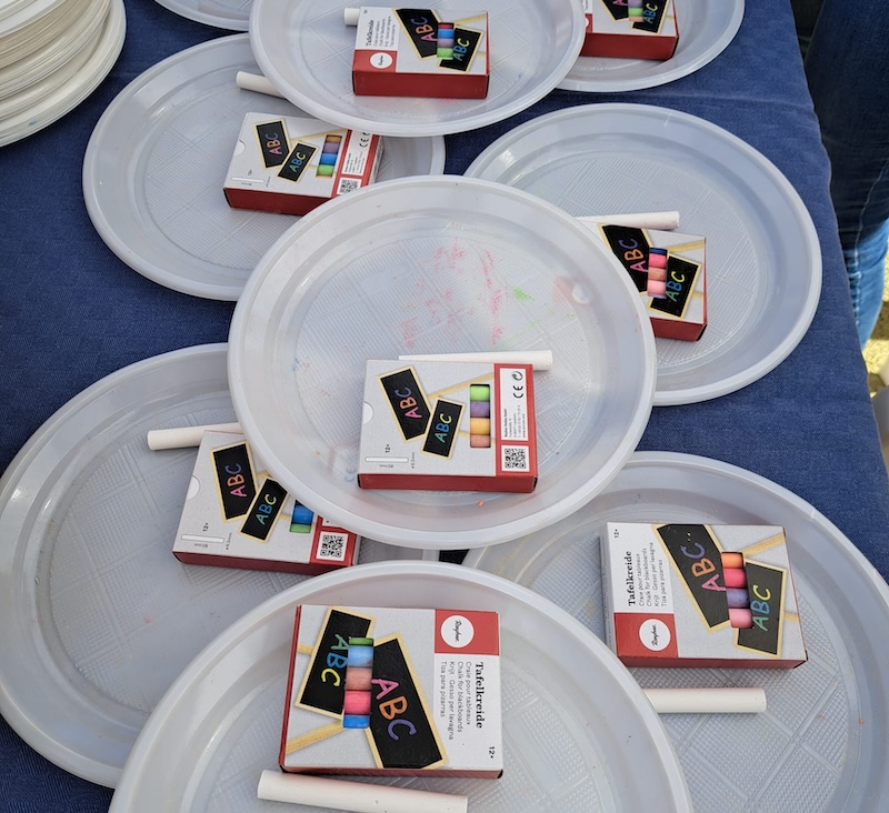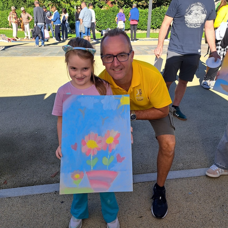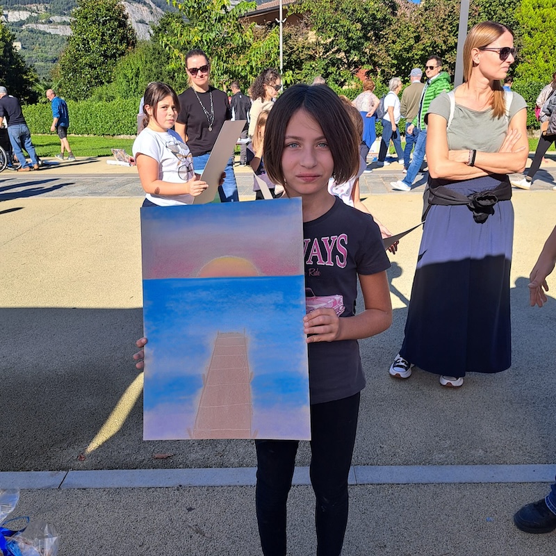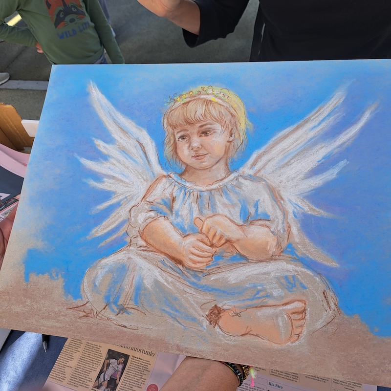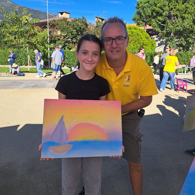 Dalle 8.30 del mattino fino alle 18, l’area ha ospitato i laboratori artistici, tra cui quello del sale e il laboratorio del gessetto, momento clou del pomeriggio, che ha coinvolto ben 60 ragazzi: tutti intenti a colorare, disegnare e realizzare le proprie opere su cartoni vegetali, guidati dagli artisti Madonnari. Le attività hanno permesso a grandi e piccoli di avvicinarsi a un’arte antica e affascinante, che porta bellezza, cultura e sacralità nelle piazze e nelle strade.