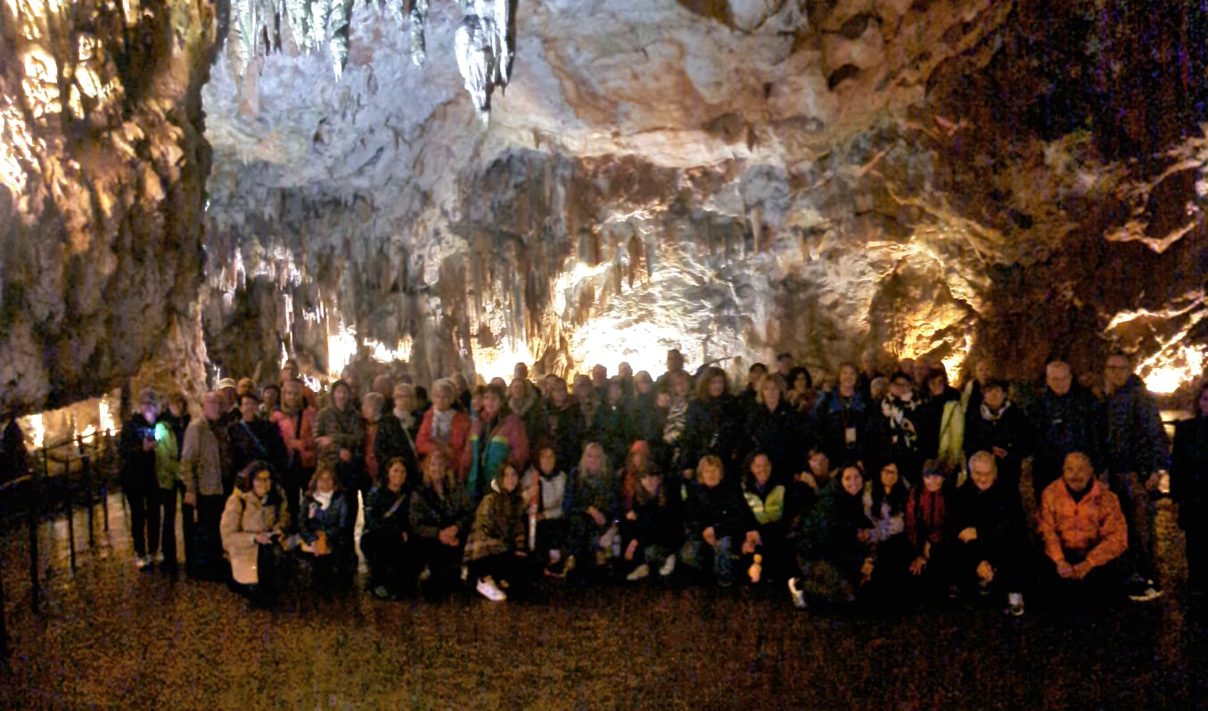 La mattina seguente, dopo la colazione in hotel, il viaggio è proseguito in direzione Slovenia, con destinazione le spettacolari grotte di Postumia. La visita guidata, iniziata alle 11, ha condotto i partecipanti in un mondo sotterraneo incantato, tra gallerie, camere gigantesche e formazioni rocciose di rara bellezza. L’esperienza è iniziata con un tragitto a bordo di un trenino elettrico che ha attraversato il cuore delle grotte, offrendo uno sguardo unico sulle stalattiti e stalagmiti scolpite dal tempo. Tra le tappe più suggestive del percorso, la sala del Congresso, la grotta del Paradiso e la galleria dei Brillanti hanno lasciato tutti senza fiato. Particolarmente affascinante l’incontro con il proteo, un raro anfibio conosciuto anche come ''drago delle caverne'', osservabile in alcune vasche illuminate.
