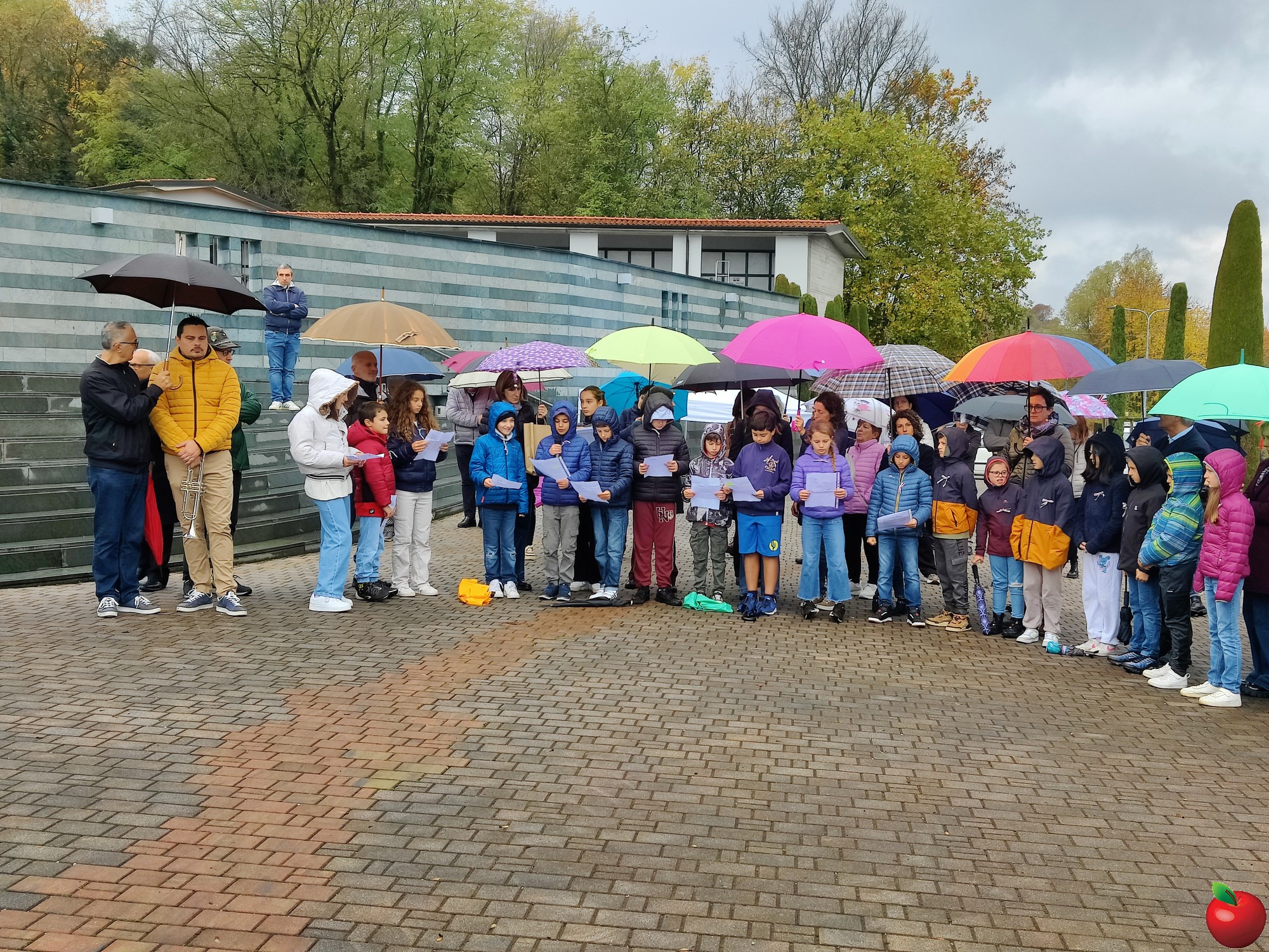 Infatti, finita la messa, l’intero gruppo si è recato presso il monumento dei caduti per la deposizione di una corona d’alloro e per un momento di raccoglimento. Qui i ragazzi hanno letto il testo “Ho dipinto la pace”, una poesia scritta da Talil Sorek che pone in primo piano la volontà di colorare, e dunque metaforicamente costruire, un ambiente pacifico, senza gli orrori della guerra e della distruzione. “Abbiamo riflettuto sulla paura e sul dolore di questa ragazza che, a causa dei conflitti, non può più fare ciò che più le piace e la rende felice. Speriamo che nel mondo regni la pace per tutti i bambini e anche per questo abbiamo inventato una ricetta chiamata ‘La zuppa di pace’ i cui ingredienti principali sono l’amore, il rispetto, la tolleranza e la condivisione. Serve eliminare ogni traccia di egoismo e di cattiveria, solo impegnandoci possiamo far si che il sacrificio di chi è venuto prima di noi non sia stato vano” hanno raccontato a turno gli alunni.