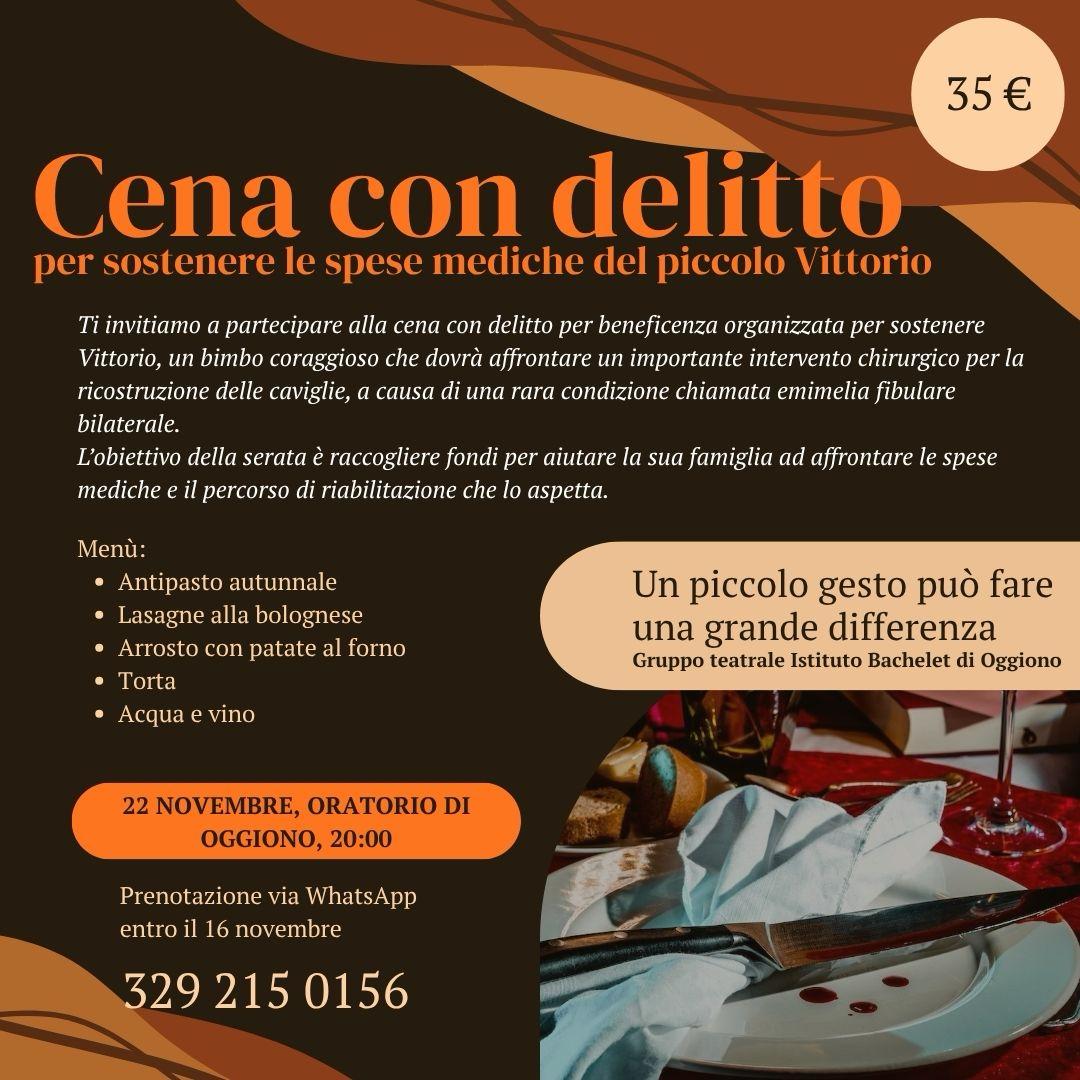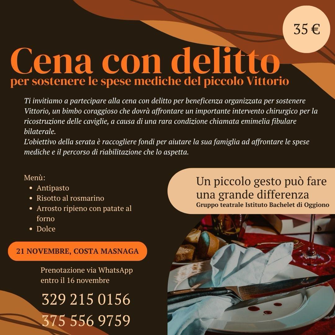 Nibionno: Cena con Delitto a favore del piccolo Vittorio