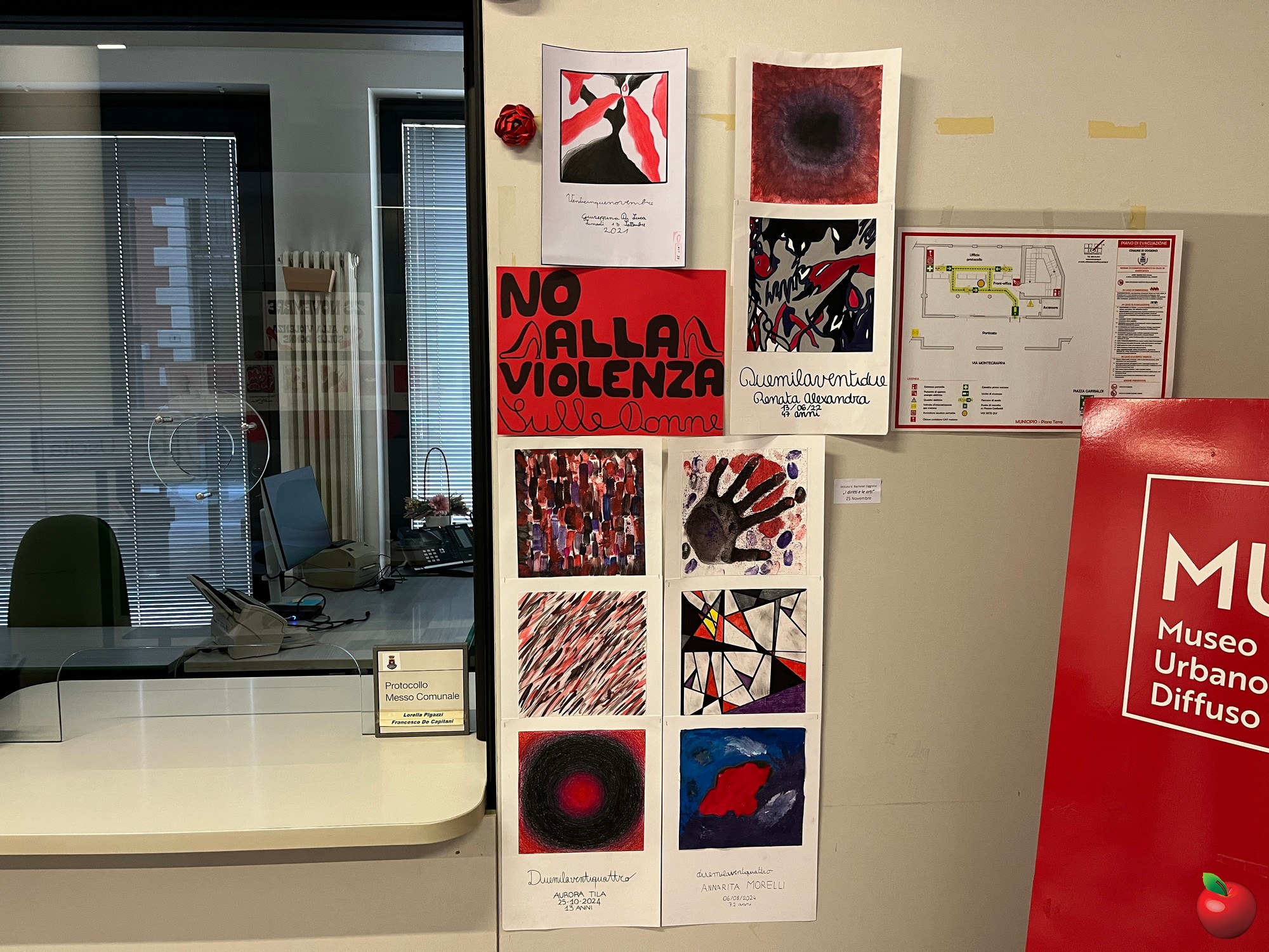 Passeggiando per gli spazi del Comune di Oggiono, ci si imbatte in qualcosa di inaspettato: opere d'arte che parlano di violenza sulle donne attraverso il linguaggio universale dell'arte astratta. Non si tratta di una mostra ordinaria, ma di un progetto che nasce direttamente dalla sensibilità e dall'impegno degli studenti dell'Istituto Bachelet.