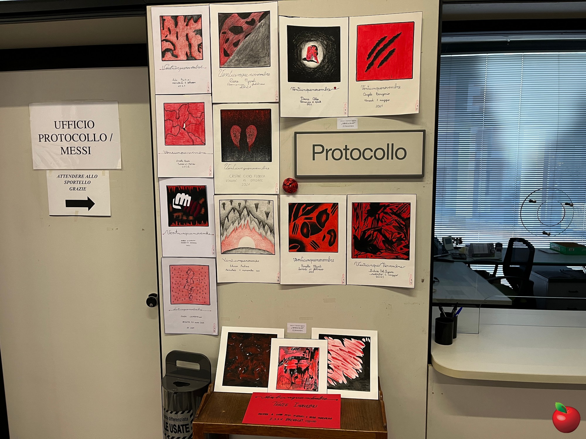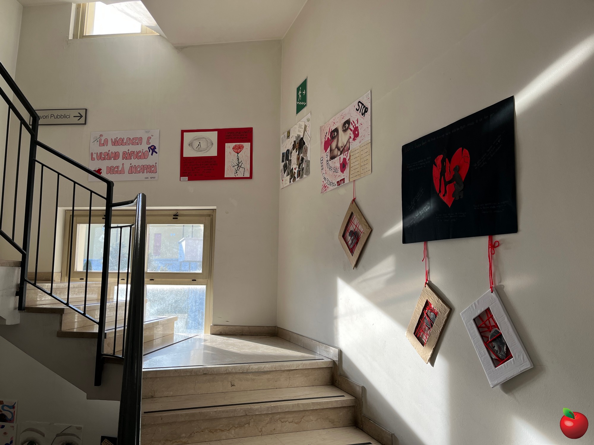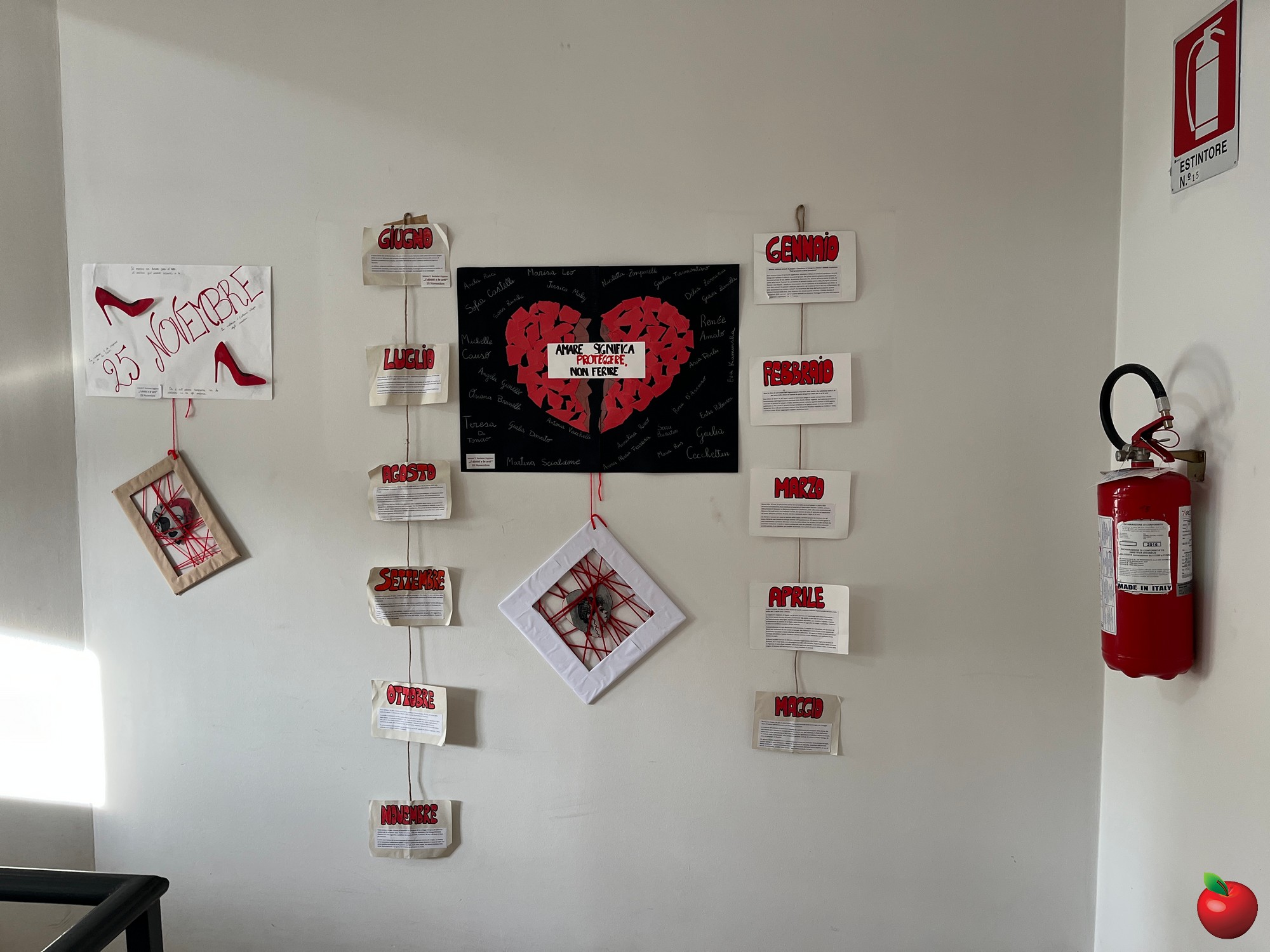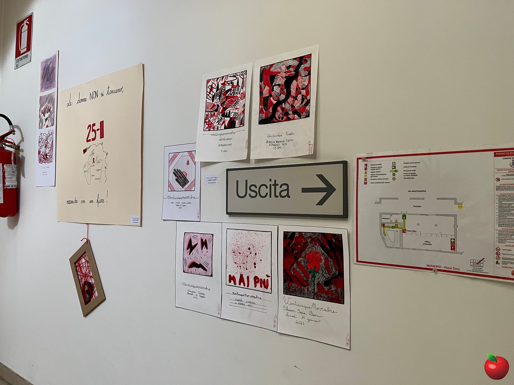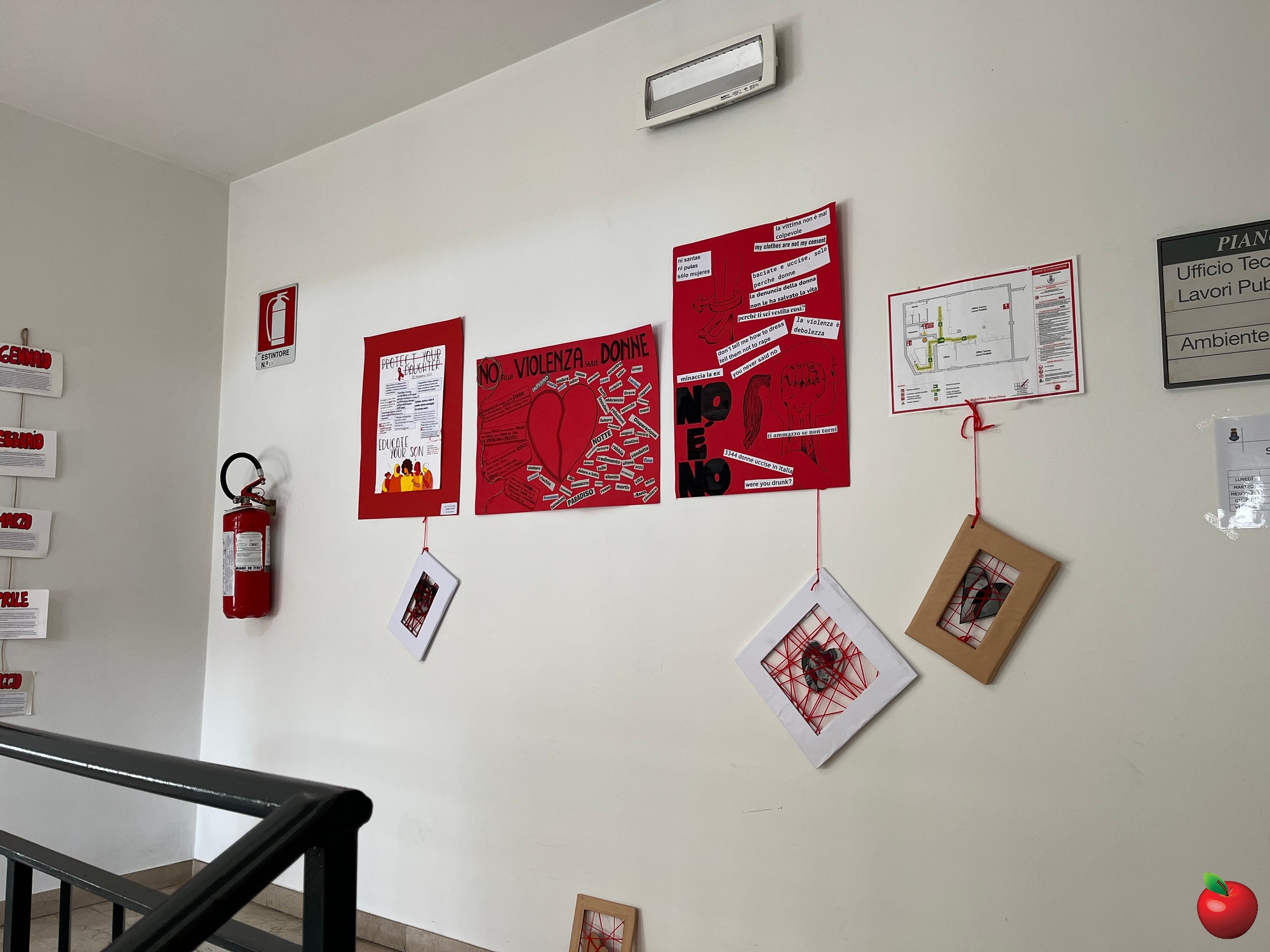 Quest'anno il corpo docente di arte ha scelto un approccio raffinato e simbolico, ispirandosi alla fotografa Lee Miller. Il formato polaroid delle opere all’ingresso accoglie i visitatori in un percorso dominato dal nero, bianco e rosso. "Abbiamo puntato sull'astratto per evitare delle immagini che fossero specificatamente ad una violenza esplicita", spiegano gli insegnanti.