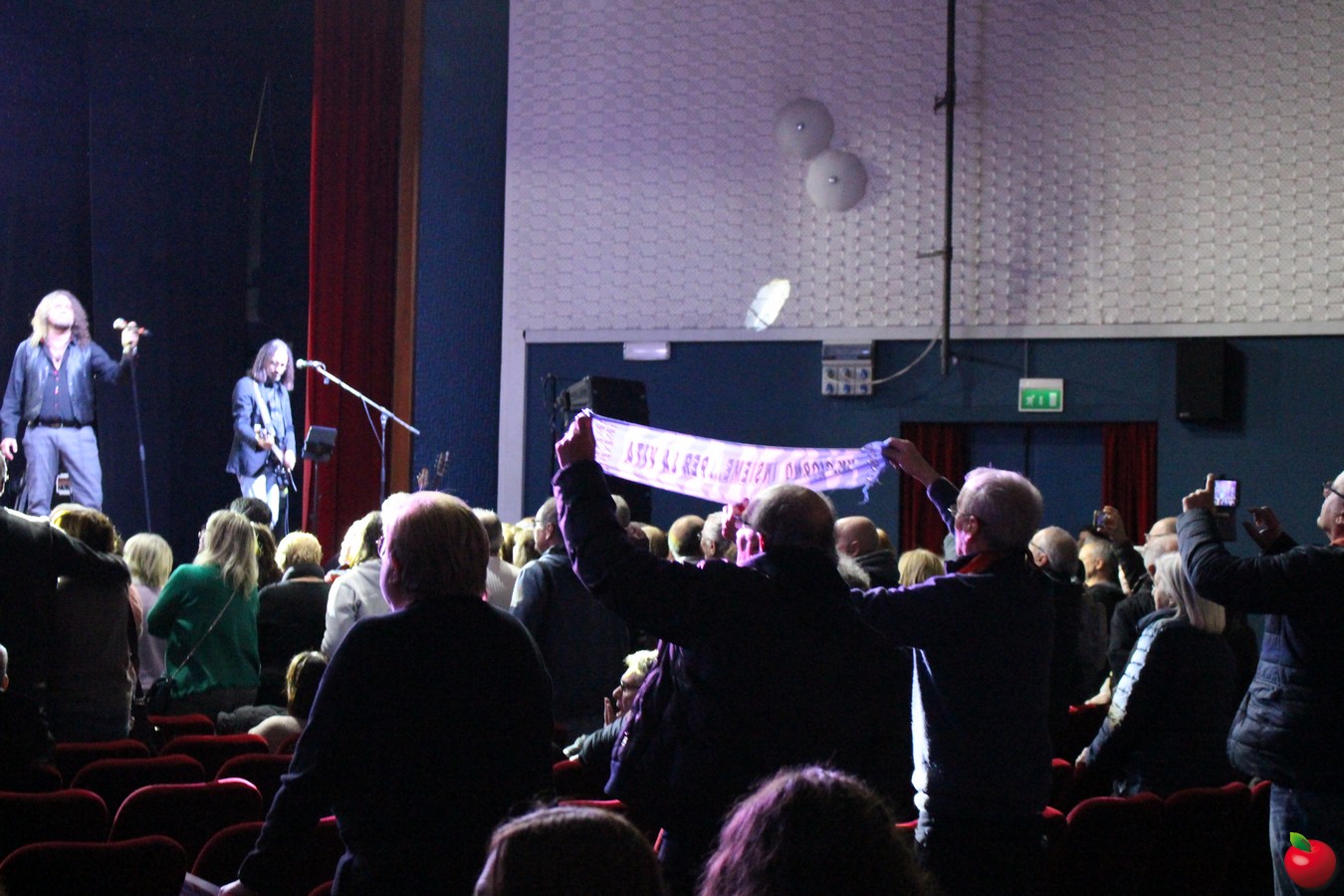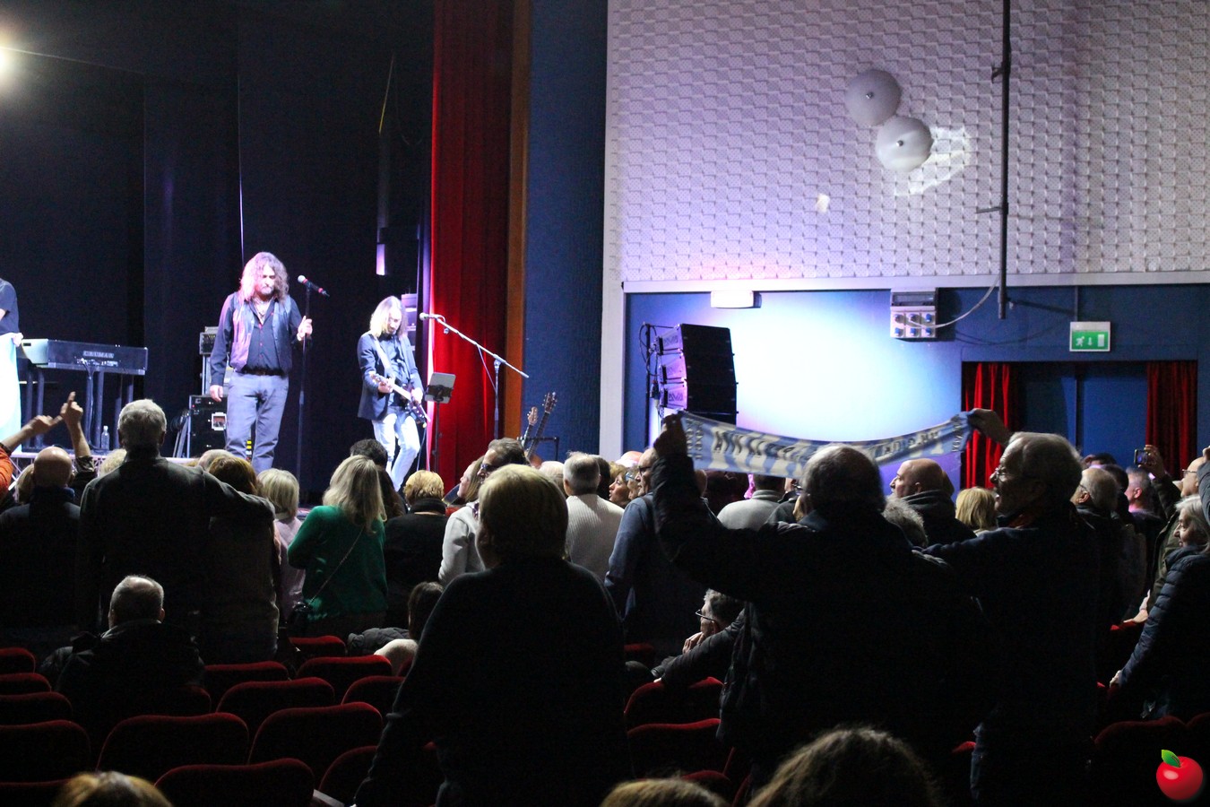 L’evento si è concluso con una lettura di una poesia, composta per l’occasione da Pietro, uno dei fan del pubblico, e con il dono di un’opera artistica ad Elisa, bassista del gruppo, che per anni ha suonato con Augusto e i Nomadi.