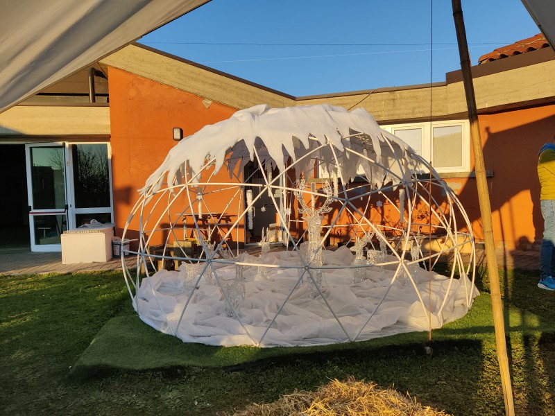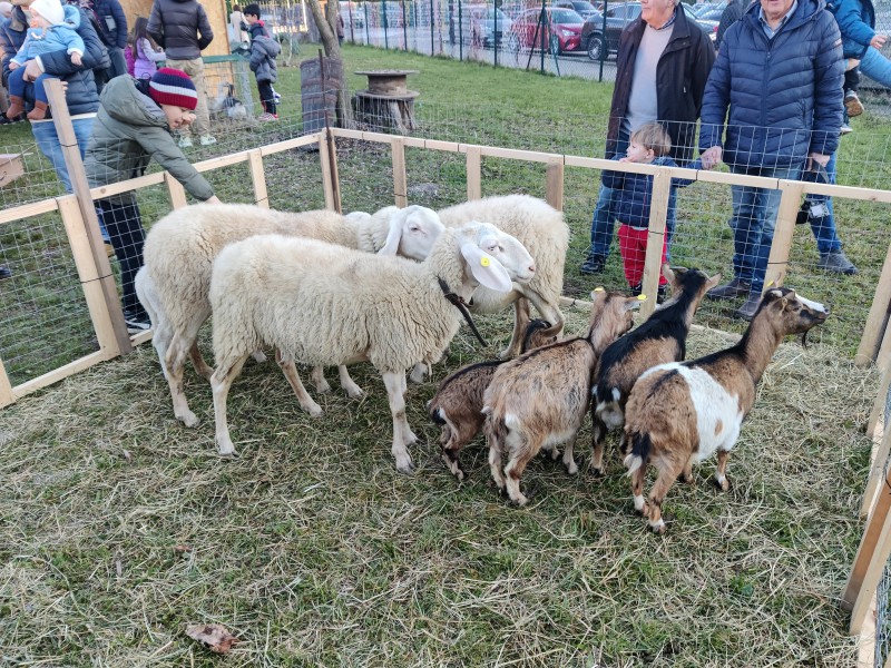 Insegnanti e genitori si sono messi all’opera per ricreare un vero e proprio villaggio colmo di botteghe e artefatti, impersonando figure come il calzolaio, il falegname e il tessitore. Attorno a loro numerosissimi animali hanno dato il benvenuto ai bimbi, i quali hanno potuto accarezzate e dare da mangiare all’asinello, alle pecore, alle capre e alle galline presenti.