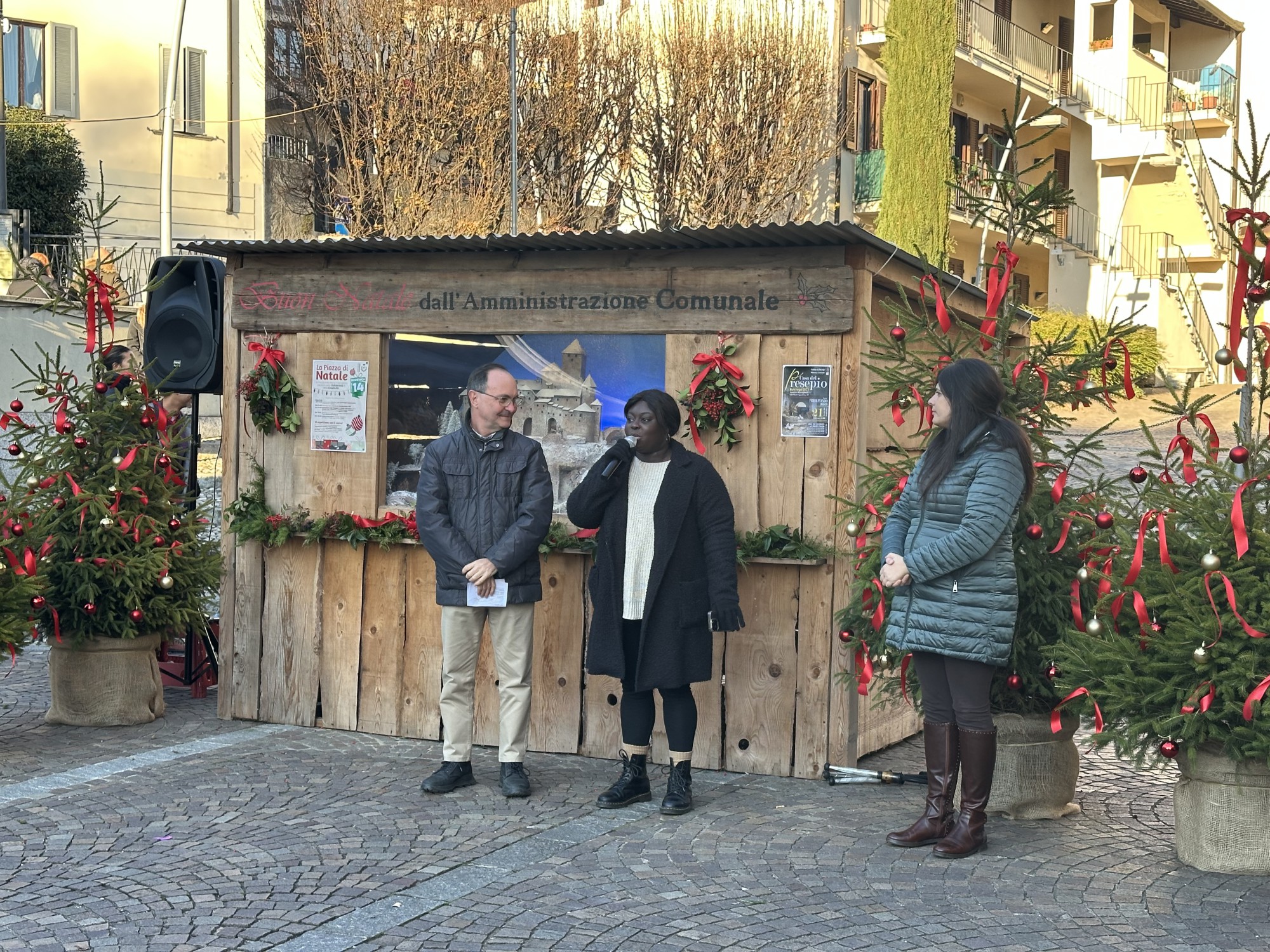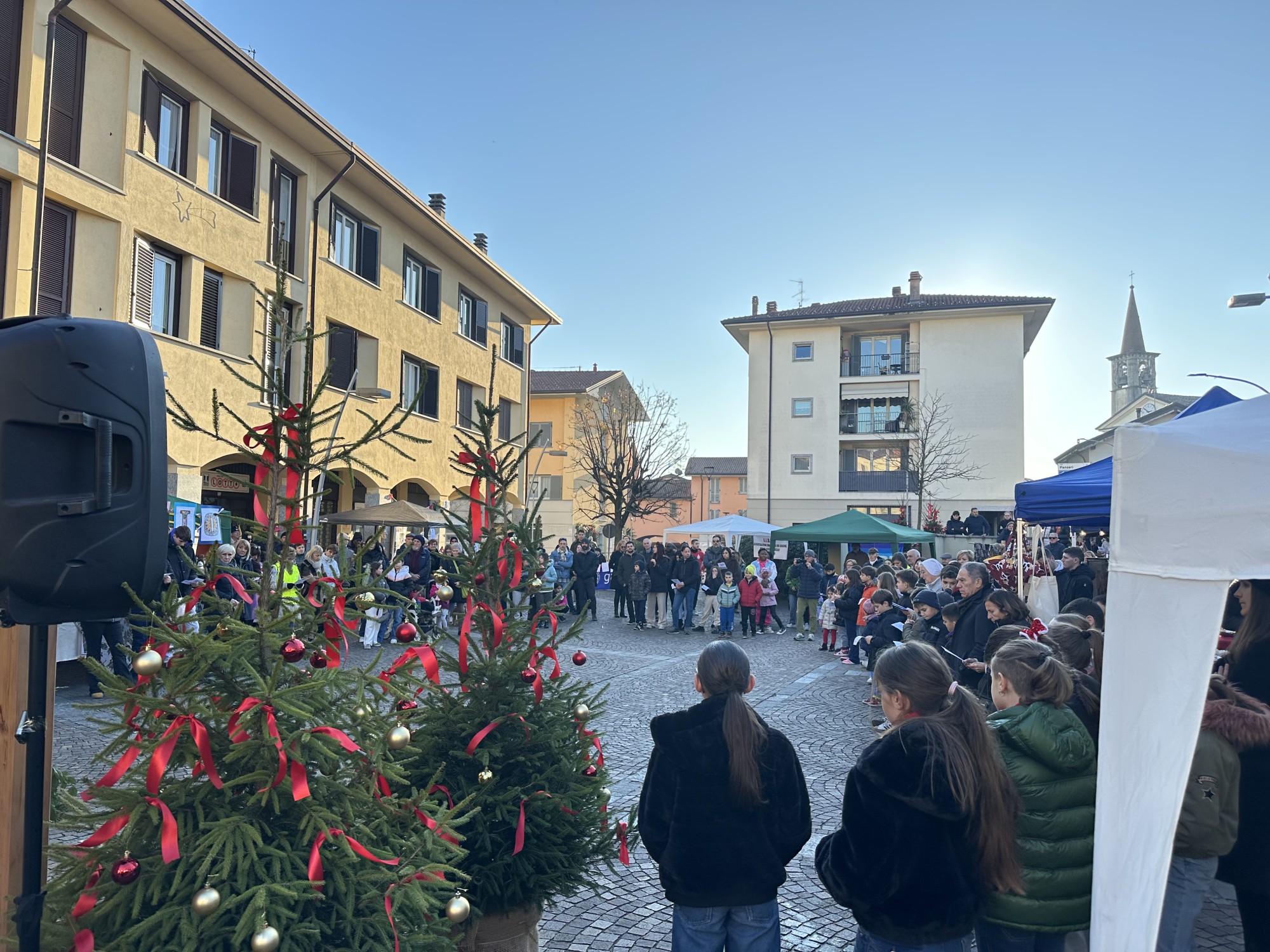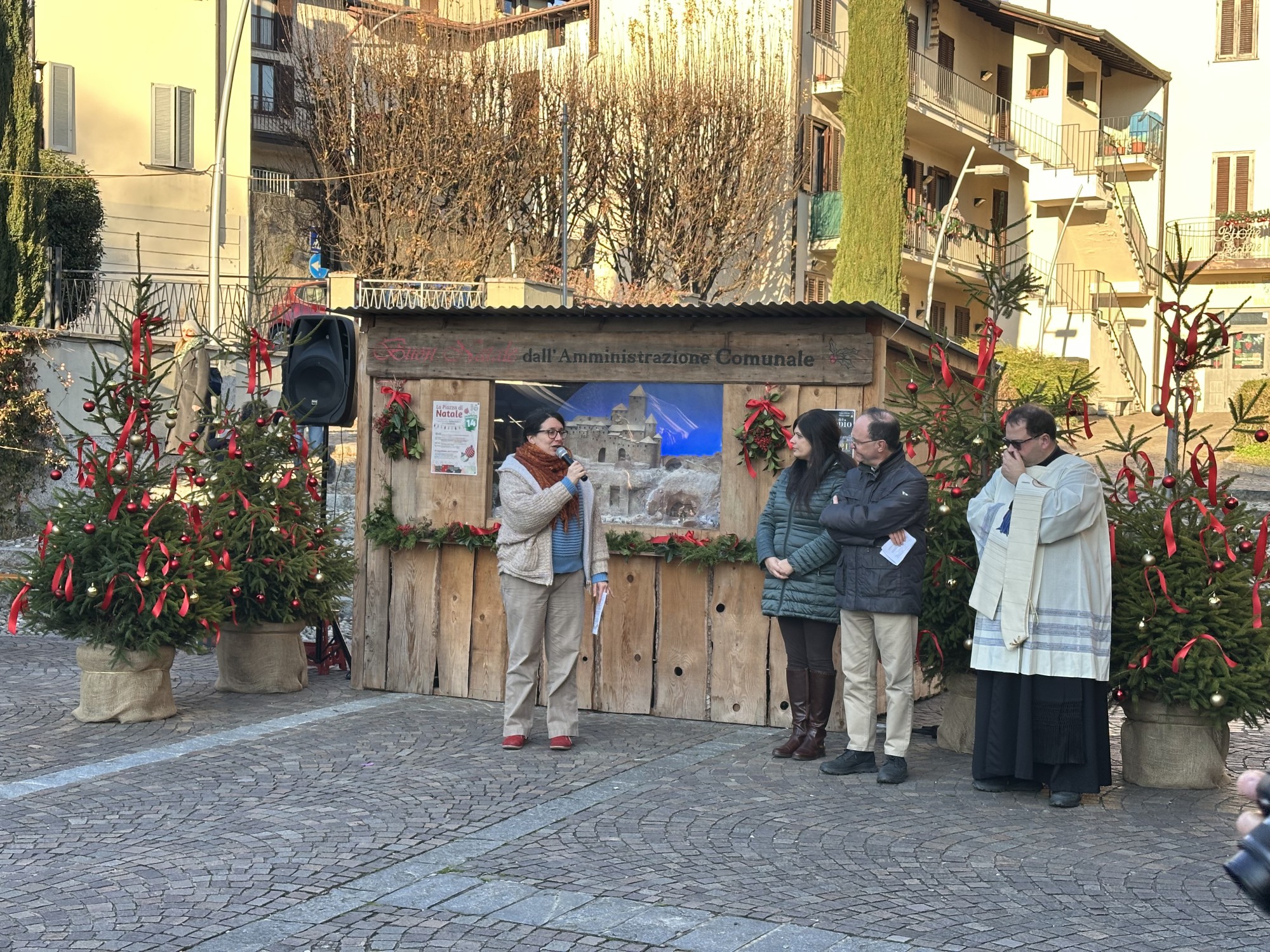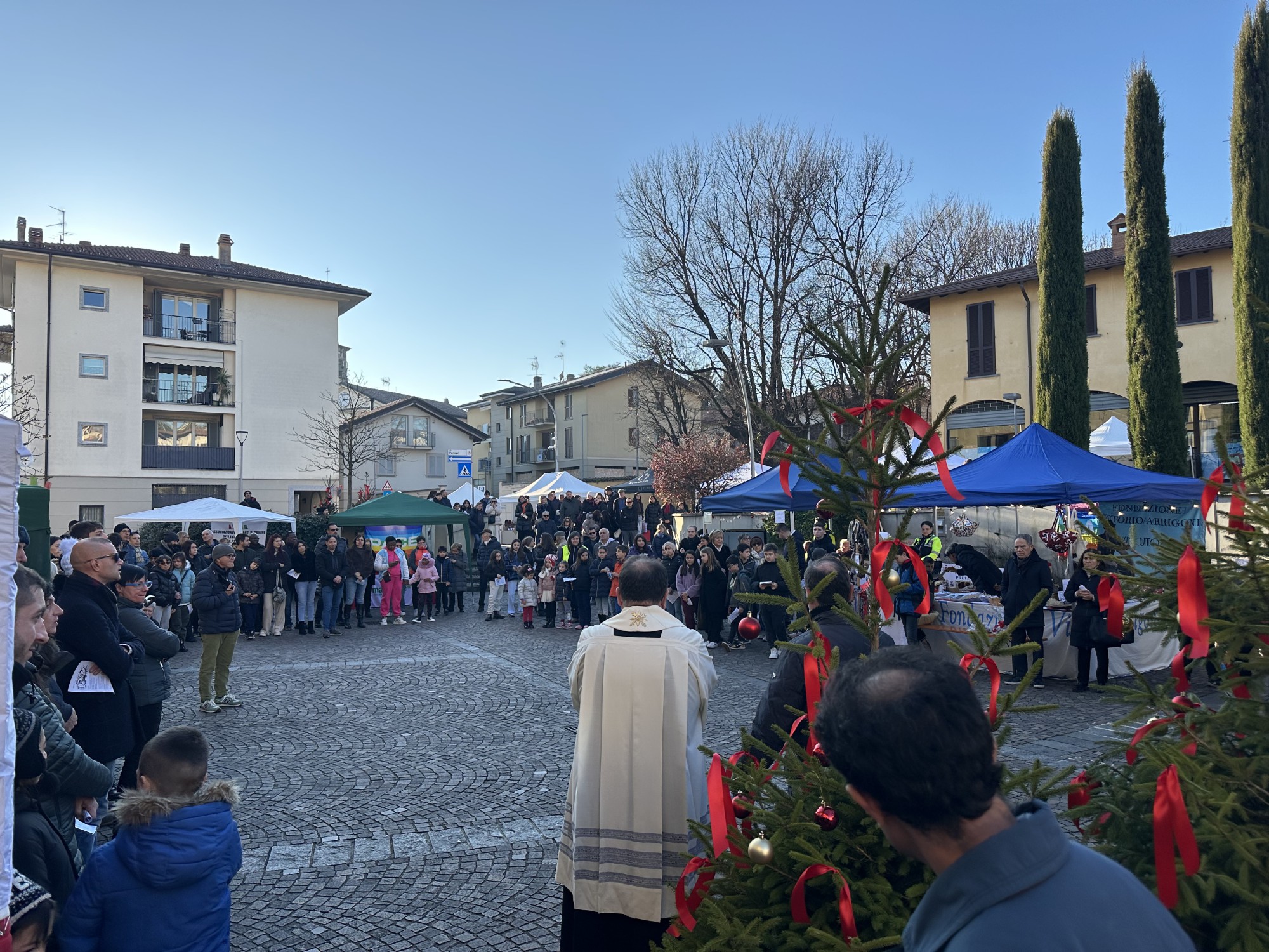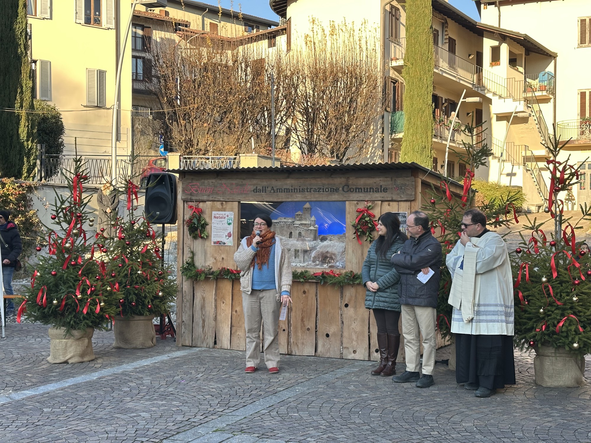 Davanti a una piazza gremita, il parroco ha augurato a tutti di vivere momenti di gioia autentica, vero significato del Natale.