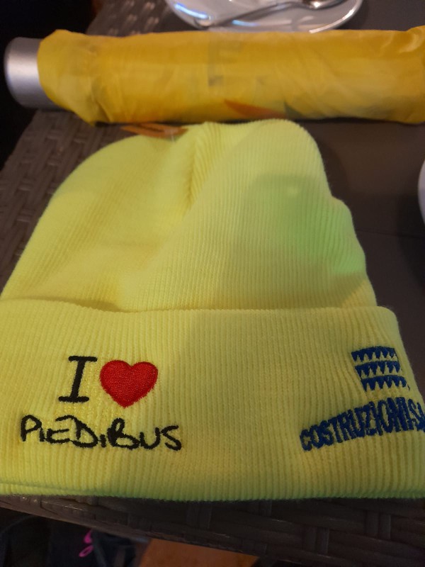 Ma le novità non finiscono qui. Un altro graditissimo dono è arrivato da Costruzioni Sassella, che ha regalato a ogni bambino un berretto invernale e un ombrellino giallo personalizzati con la scritta "I love Piedibus". La proposta, nata dai volontari della frazione di Rogoredo (dove è nato il primo "serpentone giallo" a Casatenovo e continua ad essere il gruppo più numeroso) è stata accolta con entusiasmo da Gianni Sassella. Questi regali saranno utilissimi per affrontare il freddo e la pioggia perché, lo ricordiamo, il Piedibus non si ferma mai!