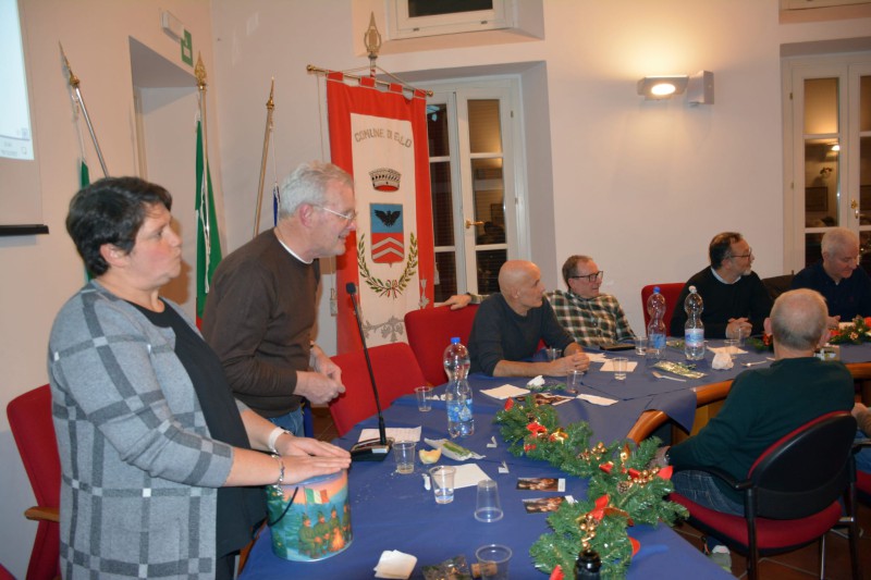 Accanto a loro, i presidenti delle numerose associazioni che operano sul territorio: gli Alpini, la Protezione Civile, il gruppo sportivo, l’associazione L’Elmo di Ello, l’associazione AETE dedicata alla terza età, l’associazione Santi Giacomo e Filippo, Caritas insieme al gruppo missionario e a quello parrocchiale, Unicef, oltre poi alle persone che, in queste settimane, si sono occupate in prima linea degli addobbi che rallegrano il paese: installazioni semplici ma curate, nate da tanto lavoro manuale.