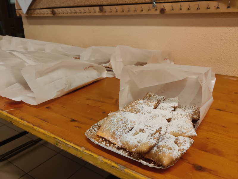 La novità di quest’anno tuttavia è rappresentata dal sostegno di diversi sponsor, i quali hanno finanziato l’acquisto degli ingredienti e hanno prestato alcuni strumenti utili alla preparazione dei ravioli e delle chiacchiere. Tra questi impossibile non citare il Sant’Anna Social Club, associazione che ha regalato alcuni carrelli pratici per trasportare i dolci dalla cucina al salone, facilitando i volontari da un punto di vista logistico.