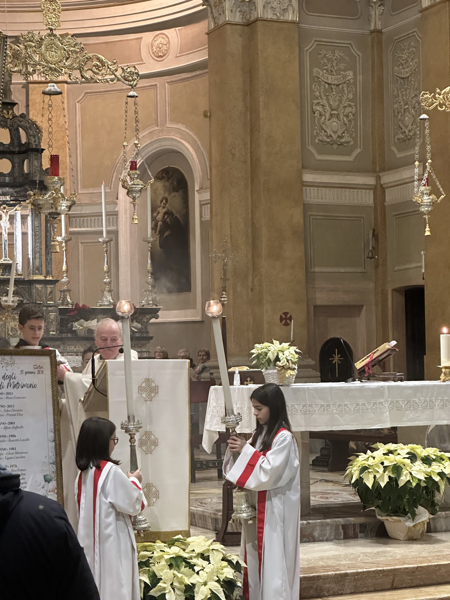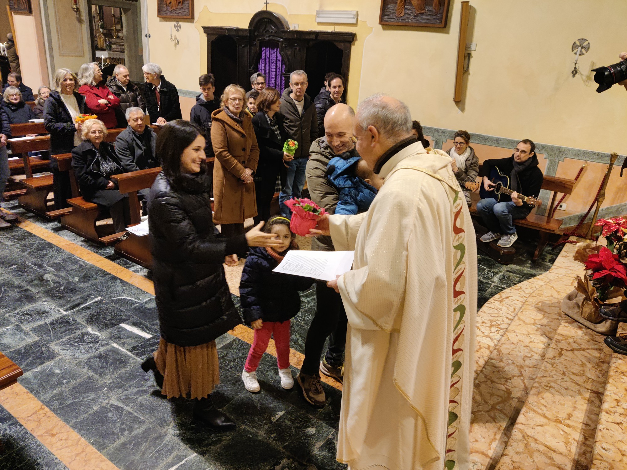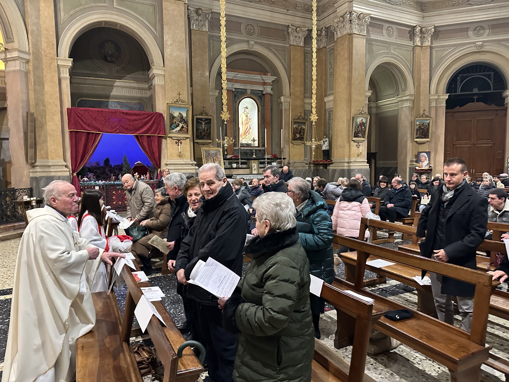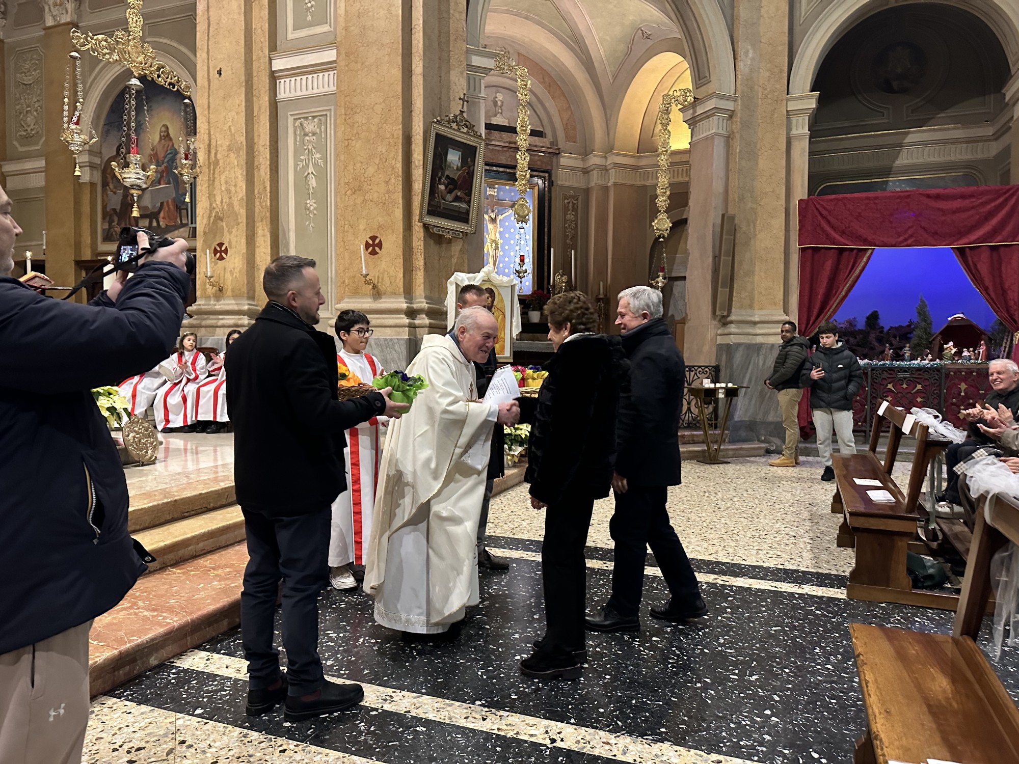 Nel corso dell’omelia, il vicario parrochiale don Emanuele Ronchi ha richiamato le tre parole indicate da Papa Francesco come essenziali per la vita di coppia: ''grazie'', da dirsi ogni giorno; ''scusami'', per imparare a perdonarsi; e ''permesso'', segno di rispetto reciproco. Il sacerdote ha poi ricordato un passaggio del Vangelo di Luca, in cui si racconta che Gesù, all’età di dodici anni, ''cresceva in sapienza, età e bontà'', sottolineando il miracolo della famiglia come luogo capace di trasmettere sapienza e valori, doni ben più grandi del solo benessere materiale. ''Vi auguro di educare bene i vostri figli perché oggi il mondo ricco non da nulla di bello ai vostri figli. Voi dovete dare cose belle''.