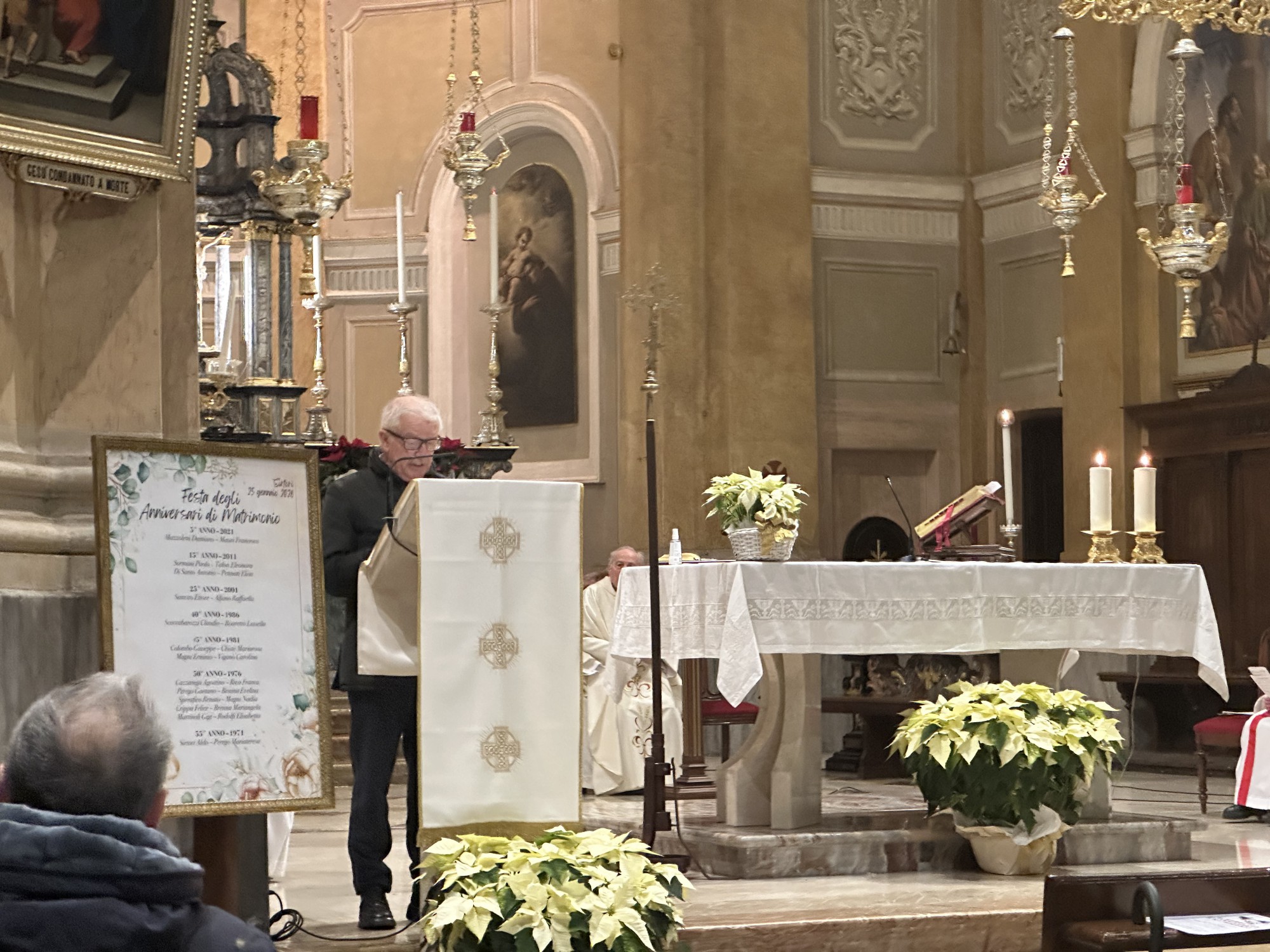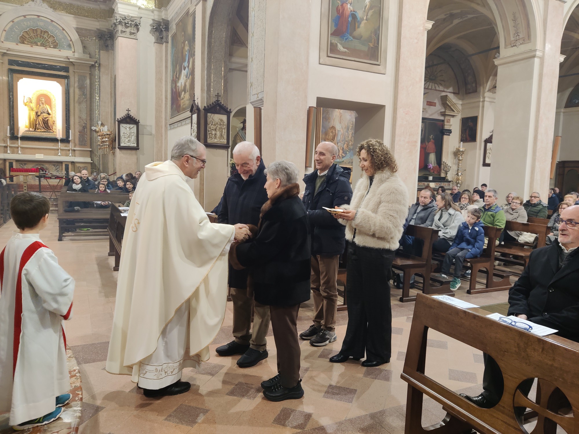 Al termine della funzione religiosa, la comunità pastorale ha omaggiato ogni coppia con un fiore e un libro come segno di riconoscenza e augurio. I festeggiamenti sono poi proseguiti con il pranzo comunitario in oratorio, occasione per continuare a condividere un momento di gioia e fraternità.