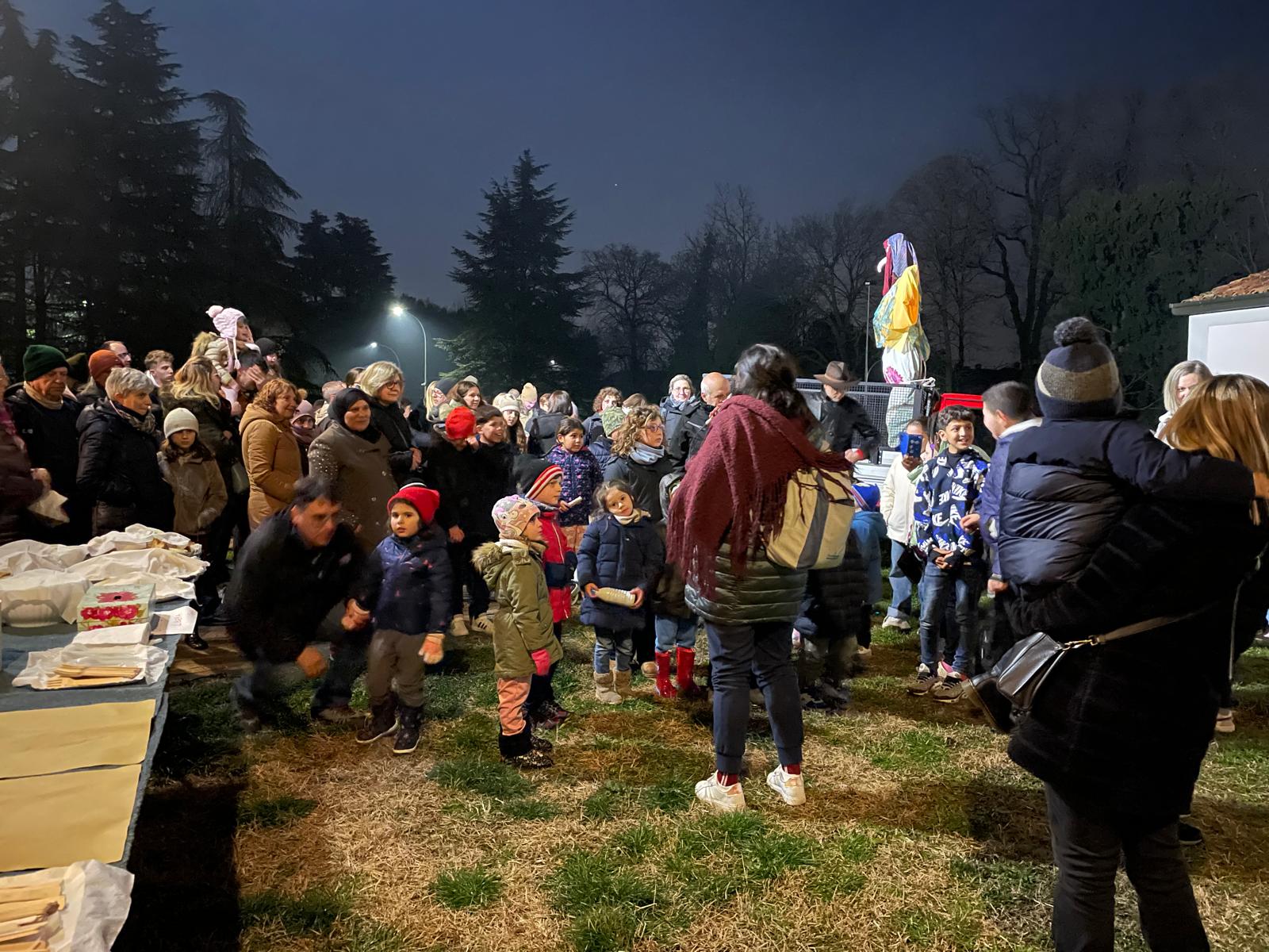 Famiglie, giovani e piccini hanno poi assistito al grande rogo, condividendo un momento di autentica convivialità attorno al fuoco, accompagnato dai sapori della tradizione: risotto con la luganega, tè caldo e vin brulé, che hanno contribuito a rendere l’atmosfera ancora più accogliente e festosa, nonostante il freddo della sera.