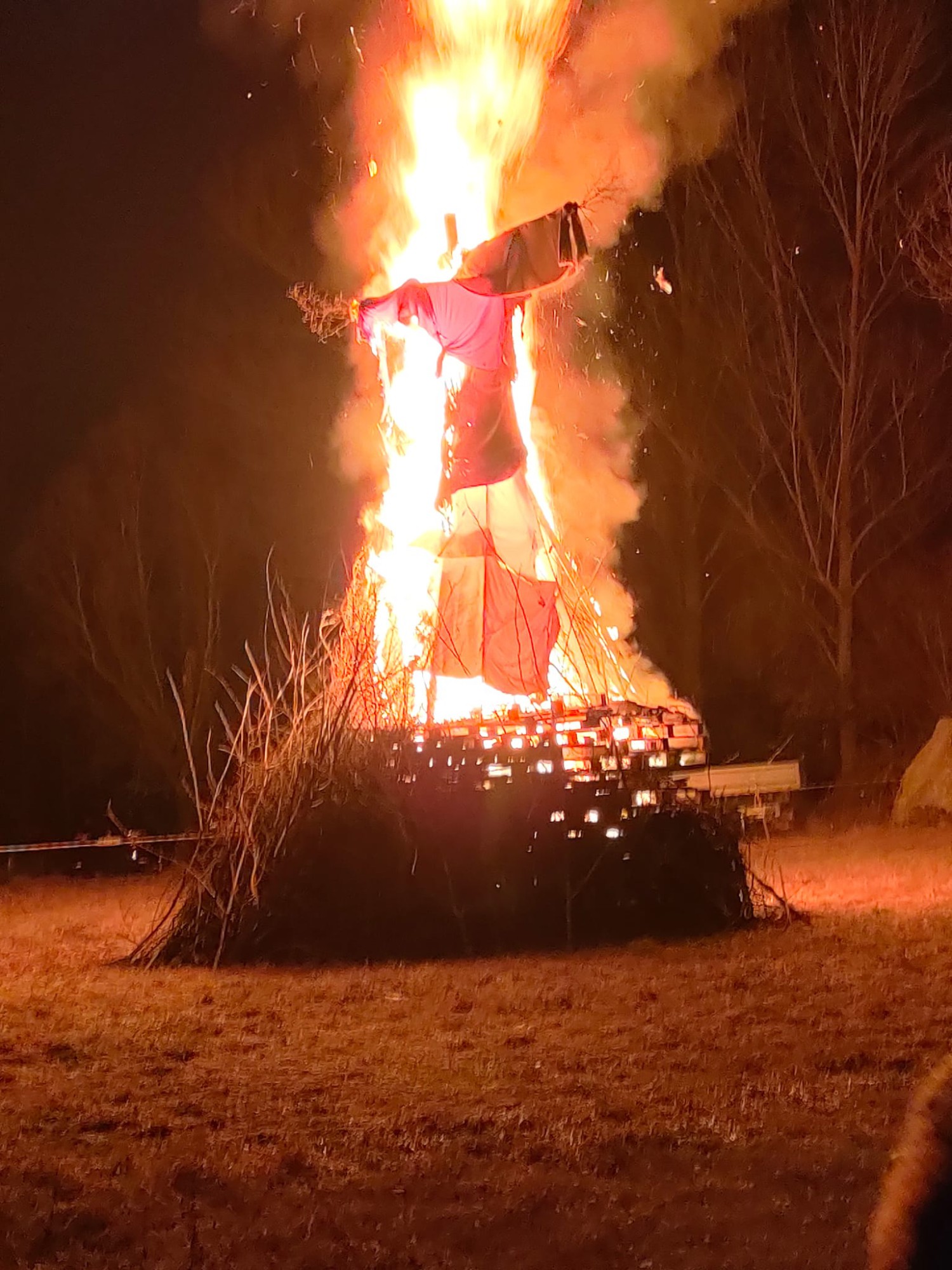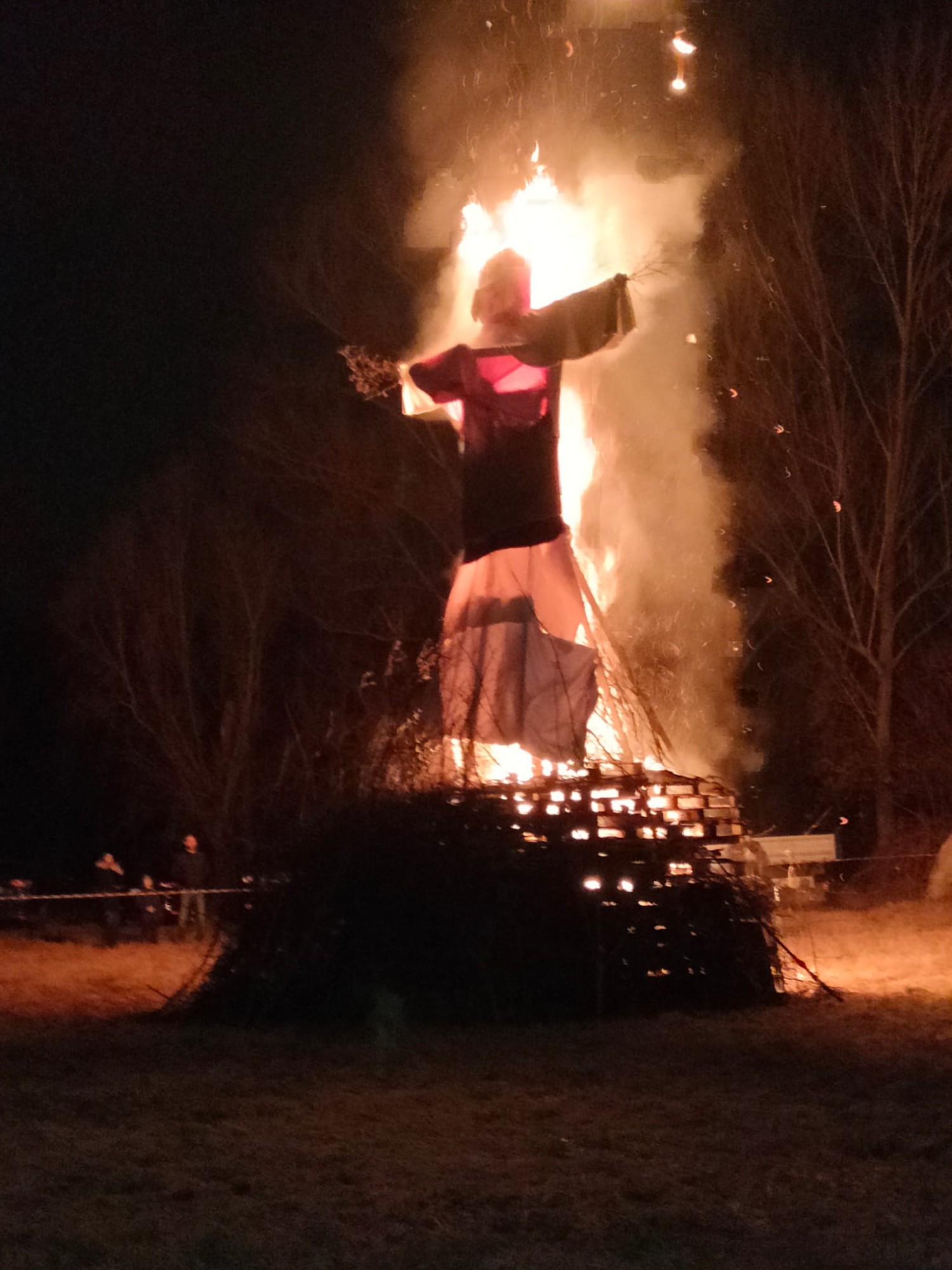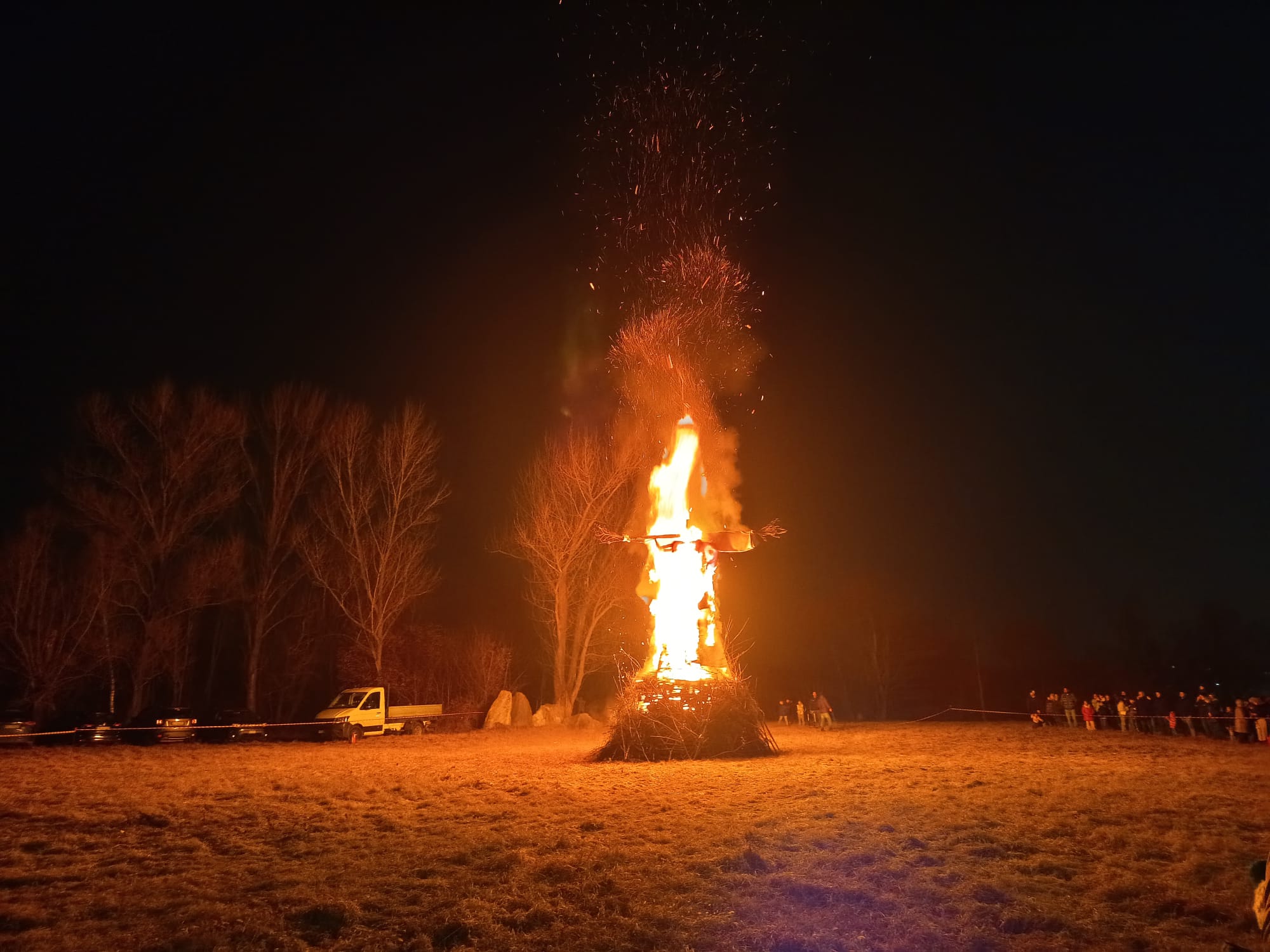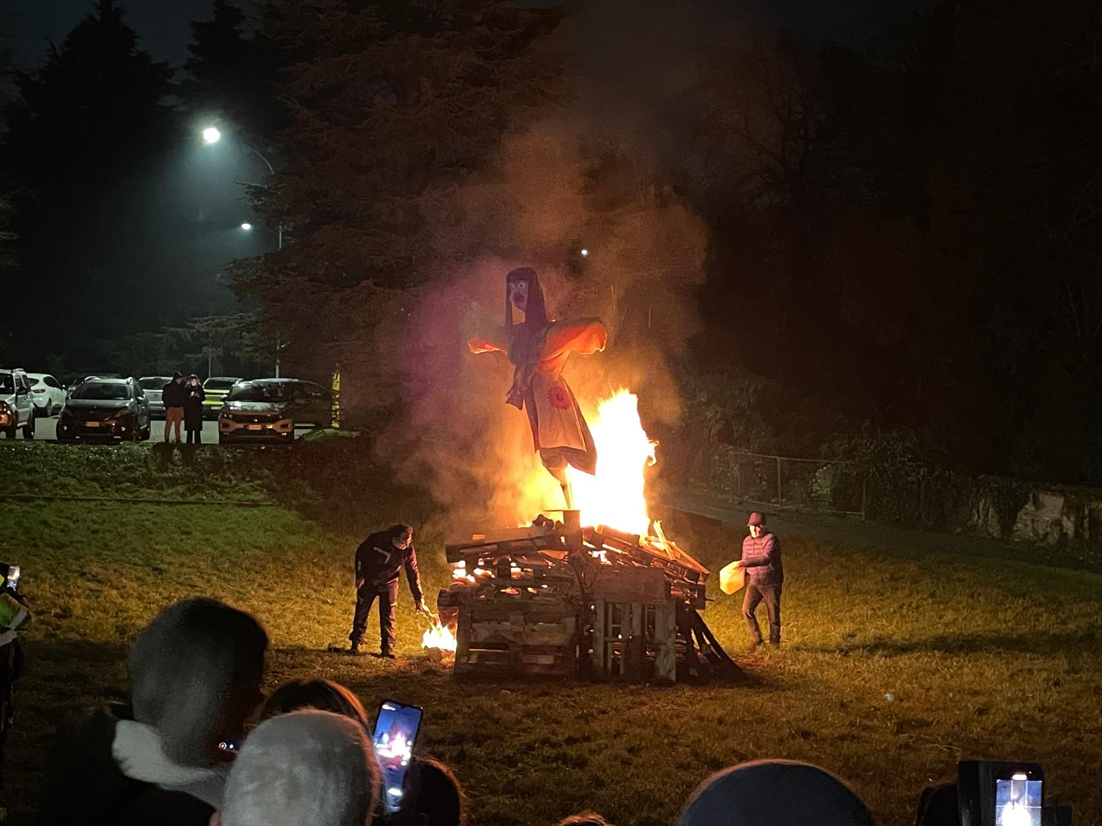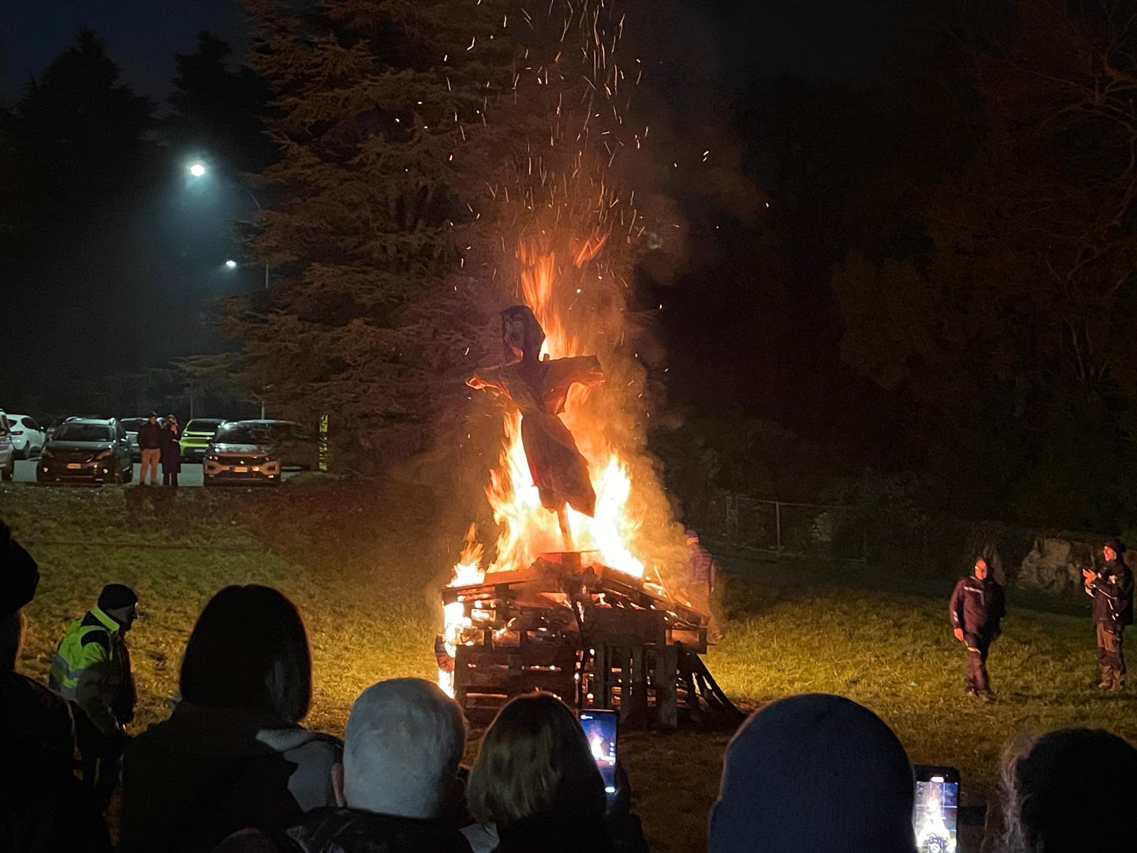 Ha avuto dunque inizio il rito propiziatorio del fuoco, caratterizzato da un momento di sorpresa quando il fantoccio in paglia della strega al posto di bruciare immediatamente si è staccato dal palo in legno da cui era sostenuto ed è caduto, quasi a voler scappare dalle fiamme.