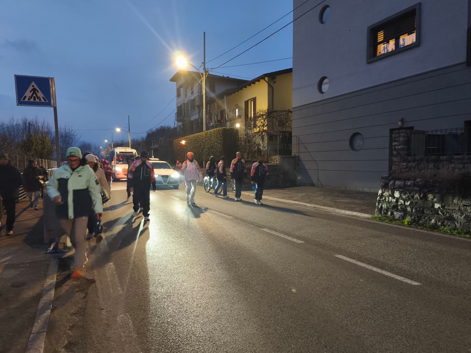 Durante la riunione e il trasferimento in pulmino c’è stata l’occasione per conoscere meglio i compagni di staffetta. Carlo, con il numero 108 avrebbe ricevuto la fiamma direttamente da un imprenditore belga appassionato di Giochi, poi l’avrebbe passata a Tiziana con il numero 109 che a sua volta l’avrebbe consegnata a Matteo Serraglini di Montevecchia.