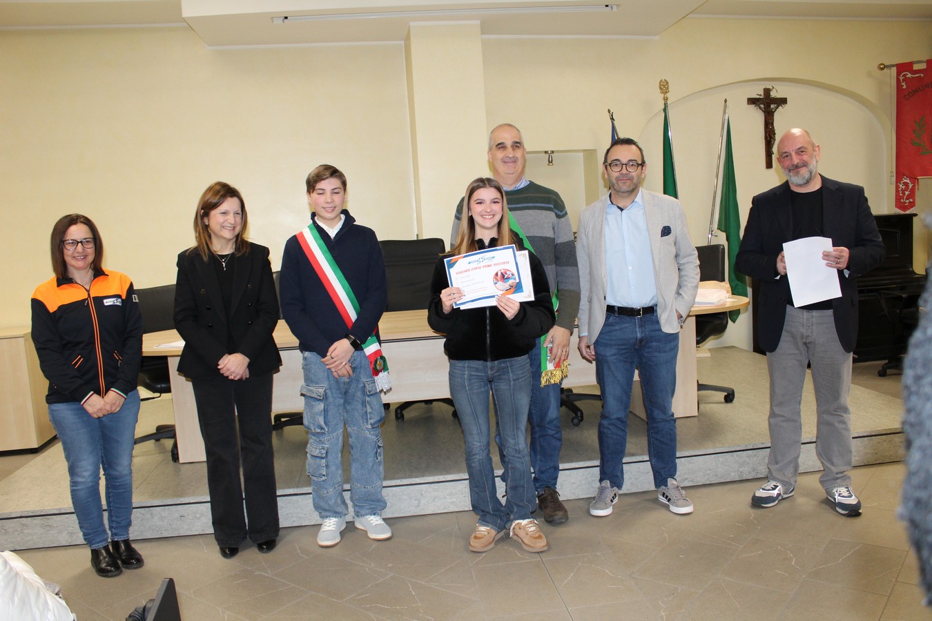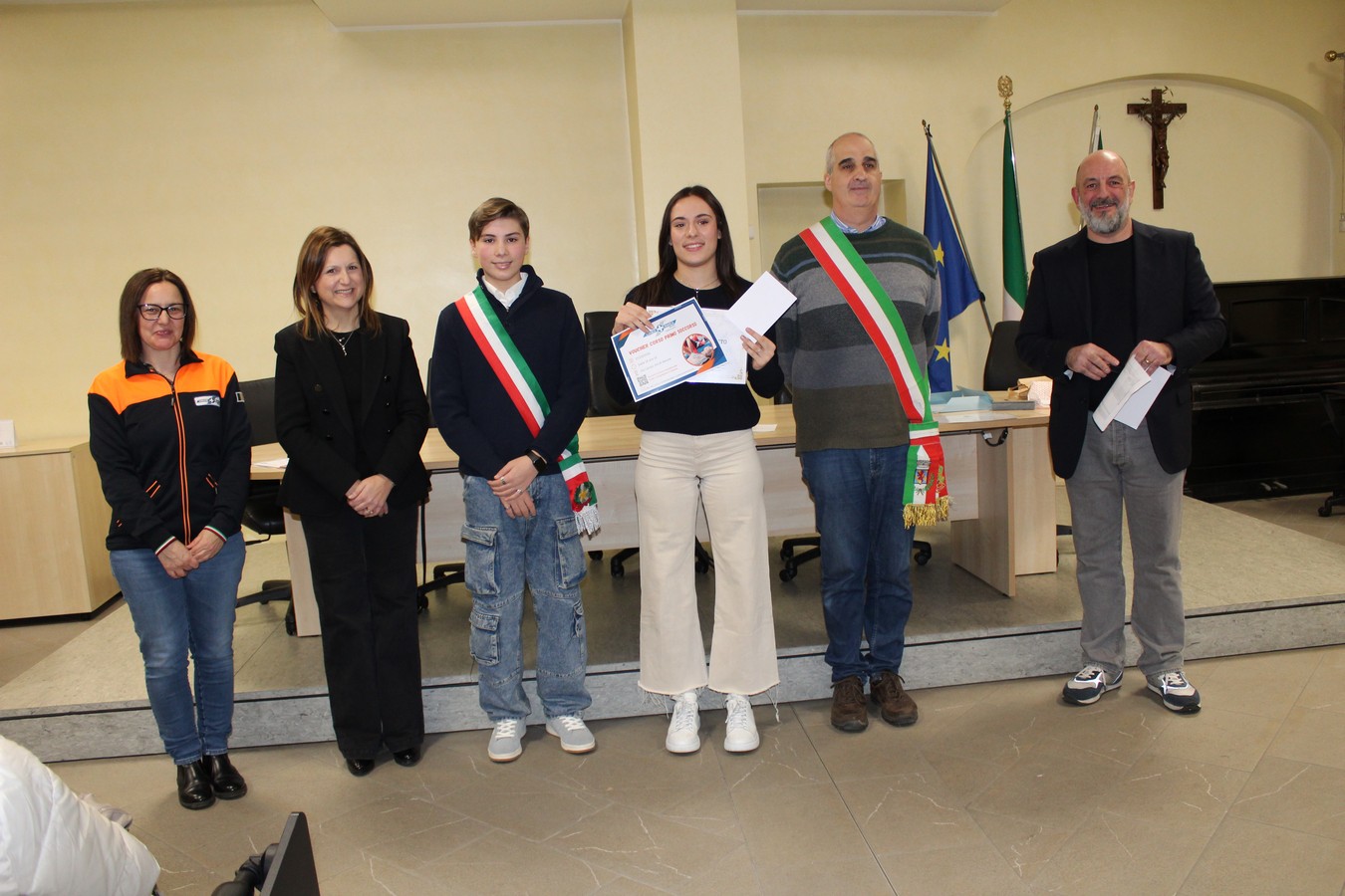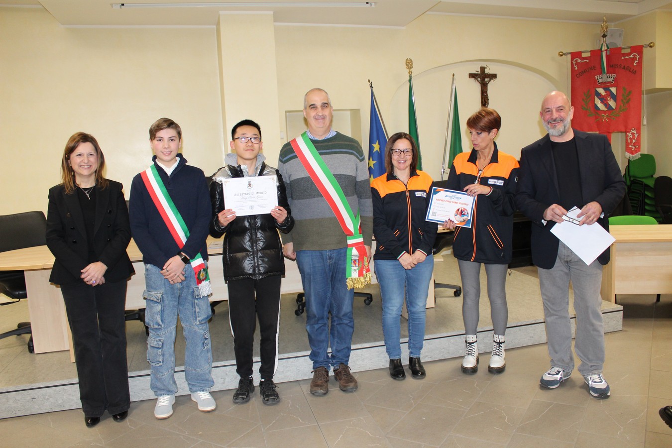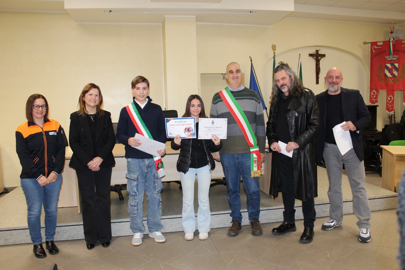 Spazio quindi alle premiazioni dei ragazzi e delle ragazze che, uno dopo l'altro, sono stati chiamati a ricevere l'attestato. A consegnarli una serie di ospiti speciali: oltre ai volontari di Croce Bianca e FuoriClasse già citati, sono intervenuti la professoressa Sabina Coladonato (referente della scuola media Leonardo da Vinci), la presidente del Consiglio di Istituto Roberta Filigura e il consigliere di minoranza Rossano Casiraghi. Quest'ultimo ha esortato i ragazzi ha coltivare la cultura, ma anche il rispetto per gli altri.