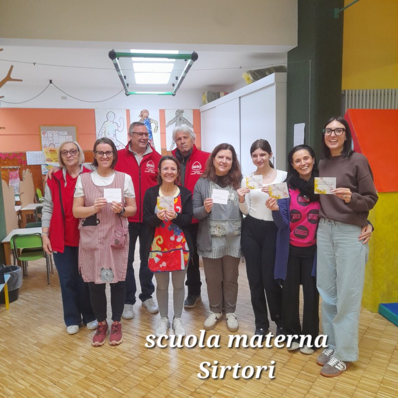 La cartolina a ricordo della Giornata è stata consegnata anche alle insegnanti e operatrici scolastiche delle tre scuole materne di Sirtori, Viganò e Barzanò, facendo visita alle tre scuole.