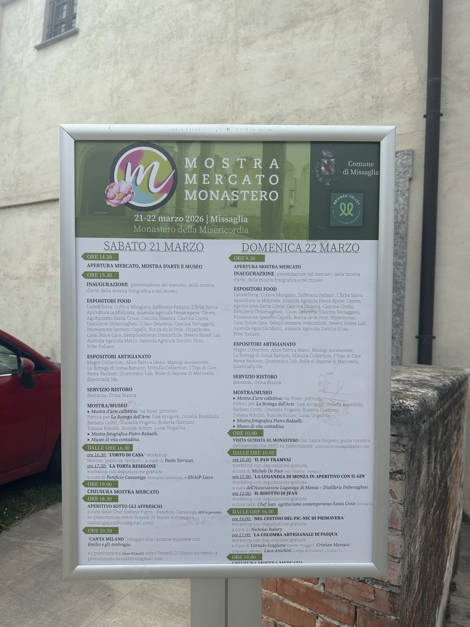 Domenica la manifestazione è proseguita con nuovi laboratori dedicati al gusto: dal ''Pan Tramvai'' alla Luganega di Monza abbinata al gin, fino al risotto dello chef Jean Colombo e alle proposte per il pic-nic di primavera. Molto partecipata anche la dimostrazione sulla colomba artigianale, con tre maestri pasticceri del territorio. Non è mancata, inoltre, la visita guidata al monastero con Laura Caspani, guida dell’associazione BRIG di Casatenovo.