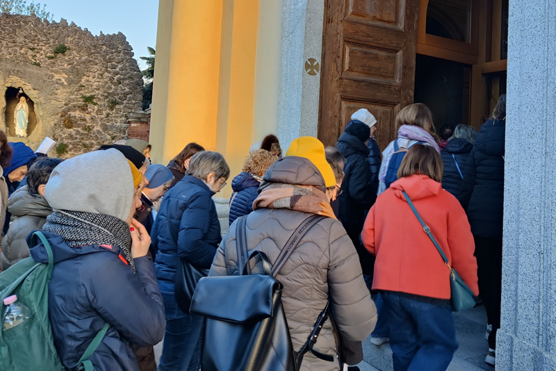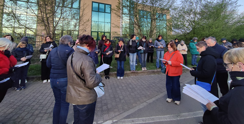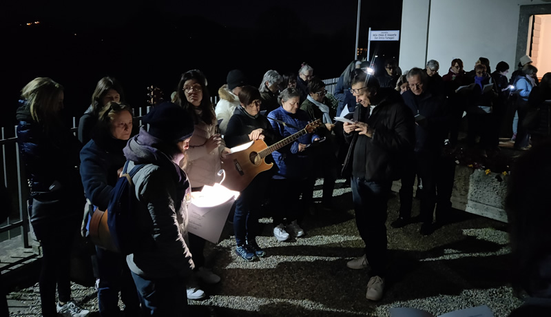 “Può sembrare una contraddizione, il Dio della vita che si infila in questo sepolcro che è il regno della morte. Egli ha raggiunto l’umanità nella sua condizione più estrema, là dove regna l’assenza apparente di Dio. Ma questo silenzio divino, pur mettendoci alla prova, non è segno di abbandono. Può essere uno spazio misterioso e necessario dove la nostra libertà si esprime nella fede, basata sulla fiducia in Dio. Una fede che non si appoggia su segni evidenti o risposte immediate, ma sulla fiducia nuda in Colui che ha promesso” ha affermato in apertura don Danilo, accogliendo circa centocinquanta donne sul sagrato della chiesina, poco prima dell’alba.
