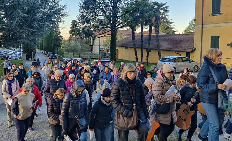 Una tradizione che ricorre ogni Sabato Santo, giorno liturgico che la Chiesa dedica al silenzio e all’attesa, in occasione del quale si ricorda come Cristo stesso abbia condiviso la condizione umana fino in fondo, sperimentando la morte e il silenzio del sepolcro. Il cammino di preghiera, nelle primissime ore del giorno, è stato guidato da Suor Anna, don Danilo Bonomi e don Eusebio Stefanoni, che hanno accompagnato le fedeli dalla chiesa dedicata alla Madonna della Neve di Valaperta fino a quella di San Biagio di Galgiana.