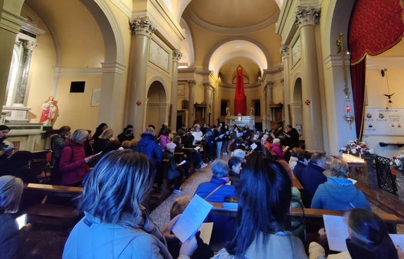 “Vanno, anzi no, corrono le donne di ieri per smuovere il sasso dalla tomba, per lenire ferite indelebili, per profumare il corpo straziato del loro Maestro. Da allora, continuano ad andare le donne di oggi, con la stessa passione di quelle di ieri. La loro audacia obbligherà il Dio della Vita, oggi come ieri, a ripetere il miracolo, a svuotare i sepolcri, a inventare la resurrezione e ad affidare loro anche oggi, come ieri, la prerogativa di raccontare al mondo la Bella Notizia e cantare nel cuore dell’umanità inni alla vita che non muore” hanno pregato le donne davanti all’altare della reposizione, prima della riflessione e degli auguri finali da parte di don Danilo.