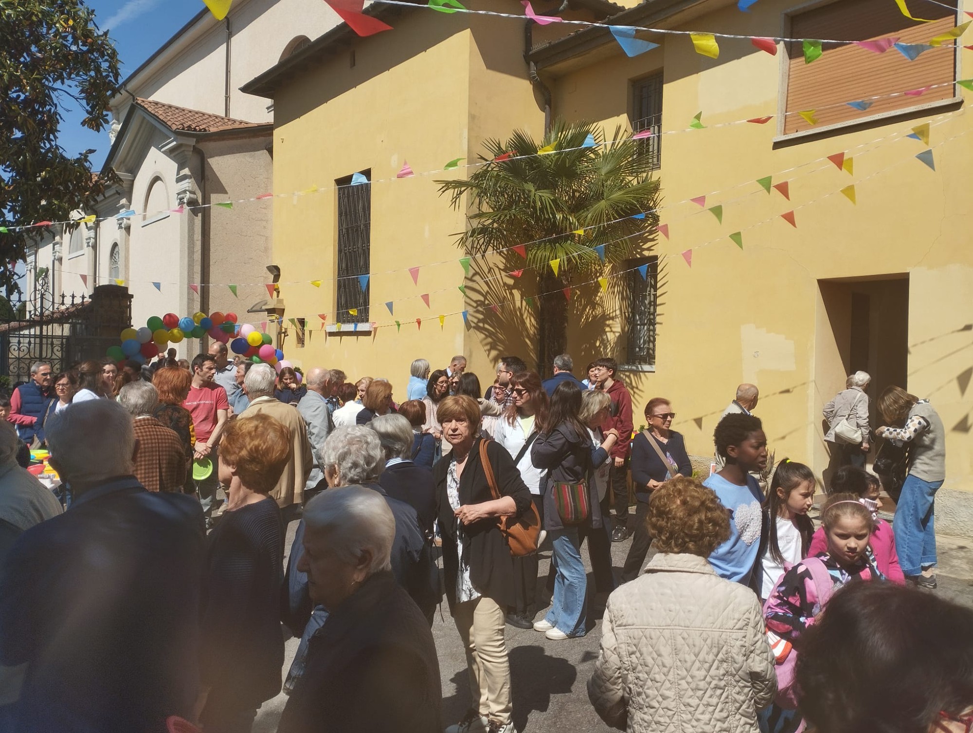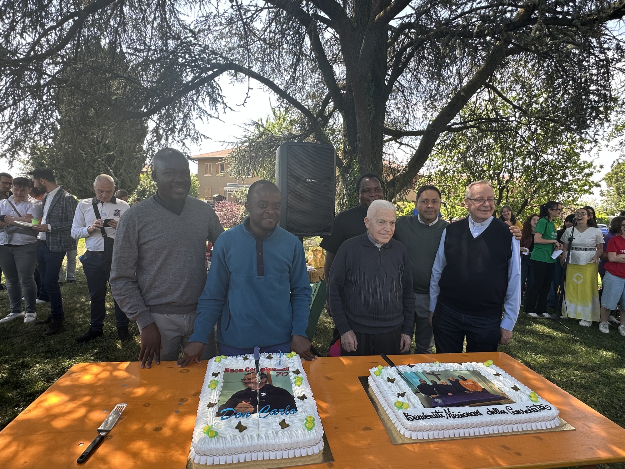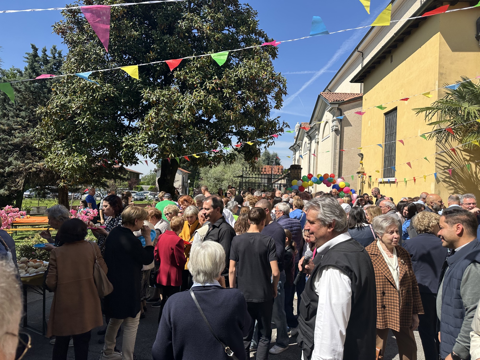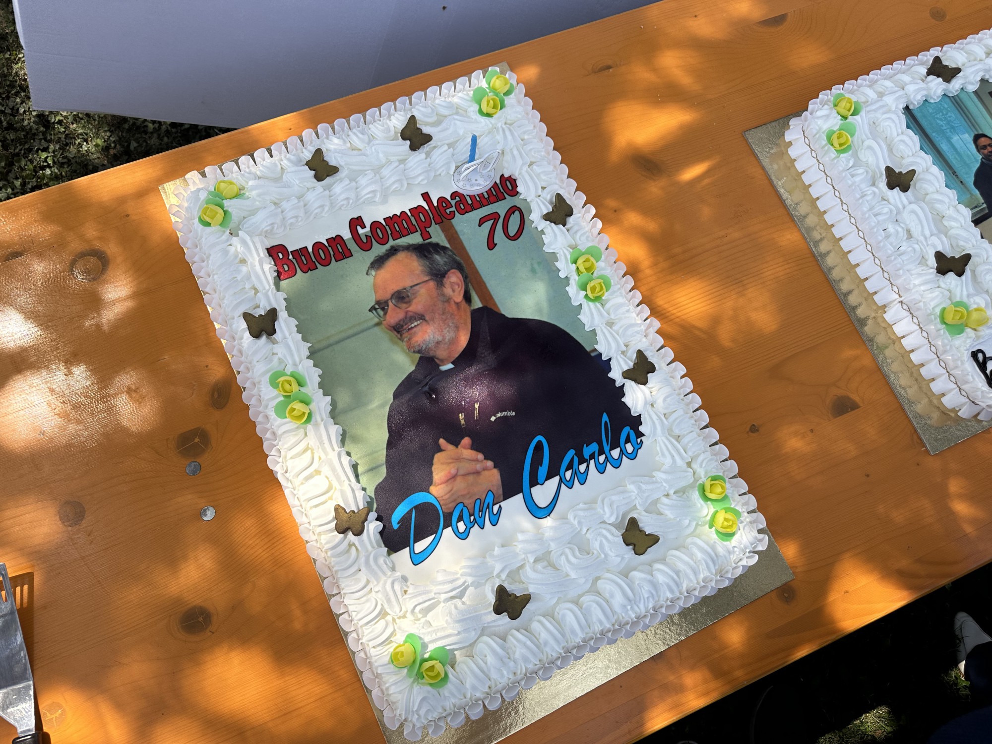 La mattinata è poi proseguita nel giardino della casa parrocchiale con un momento conviviale aperto a tutti, accompagnato dal taglio della torta per festeggiare i 70 anni di don Carlo Pirotta, salutato con auguri cantati in diverse lingue.