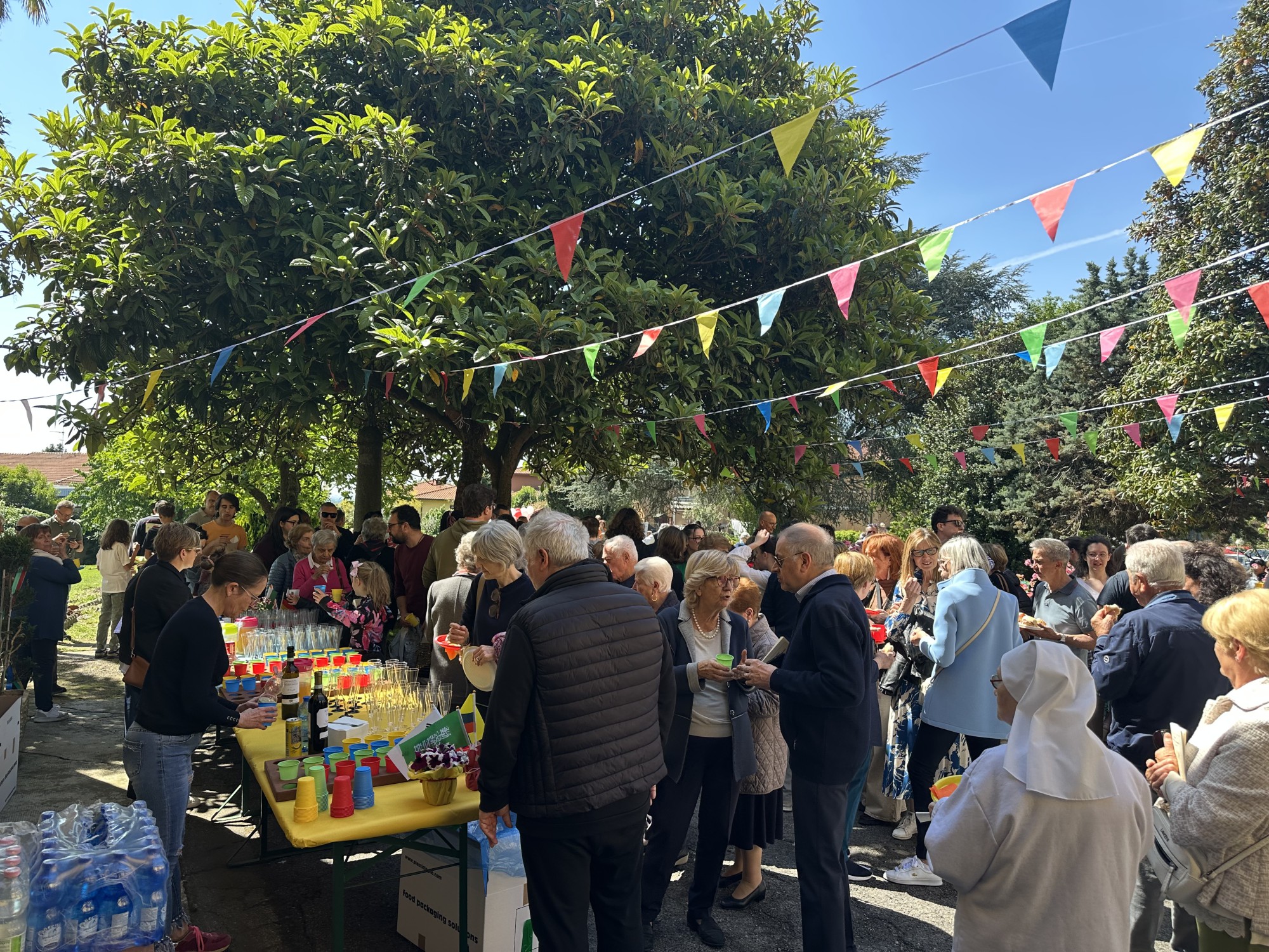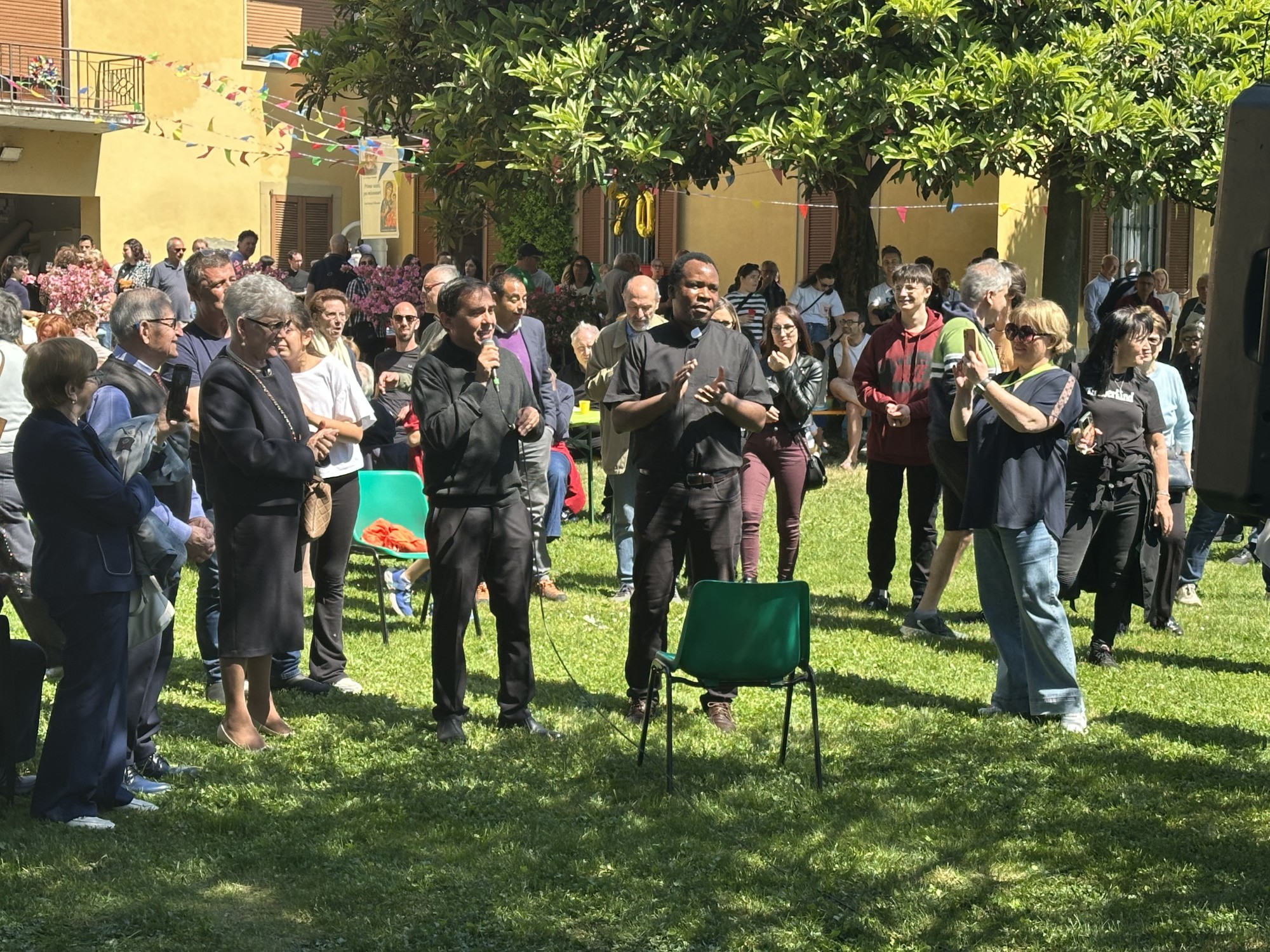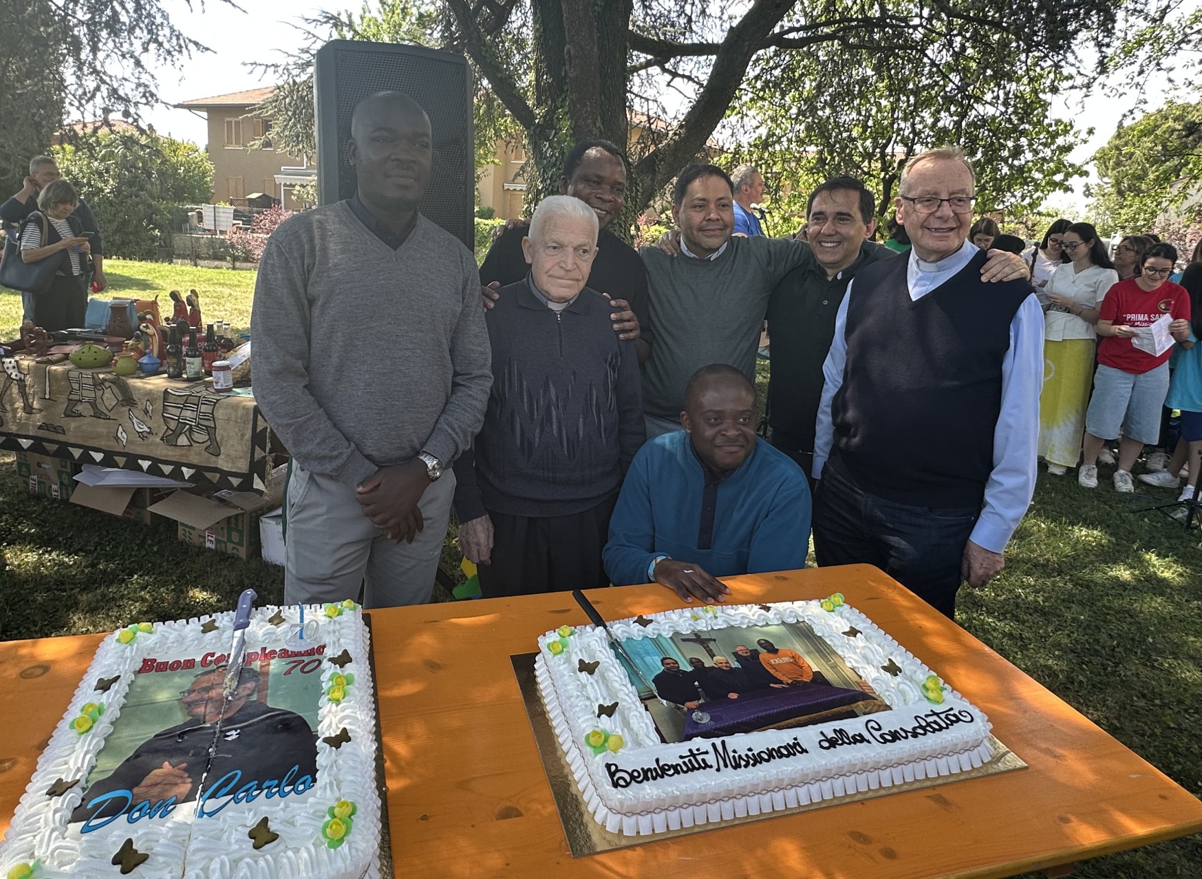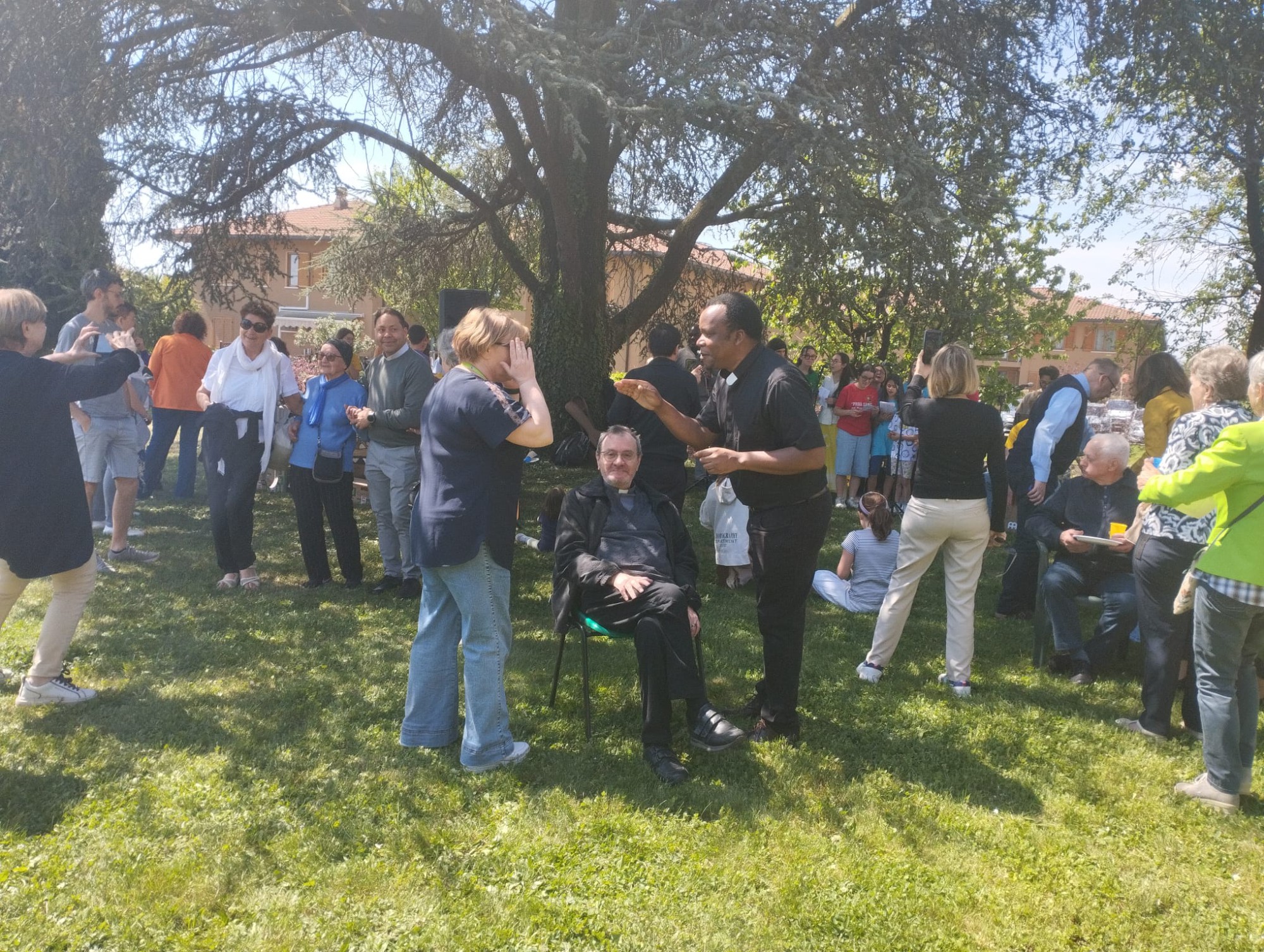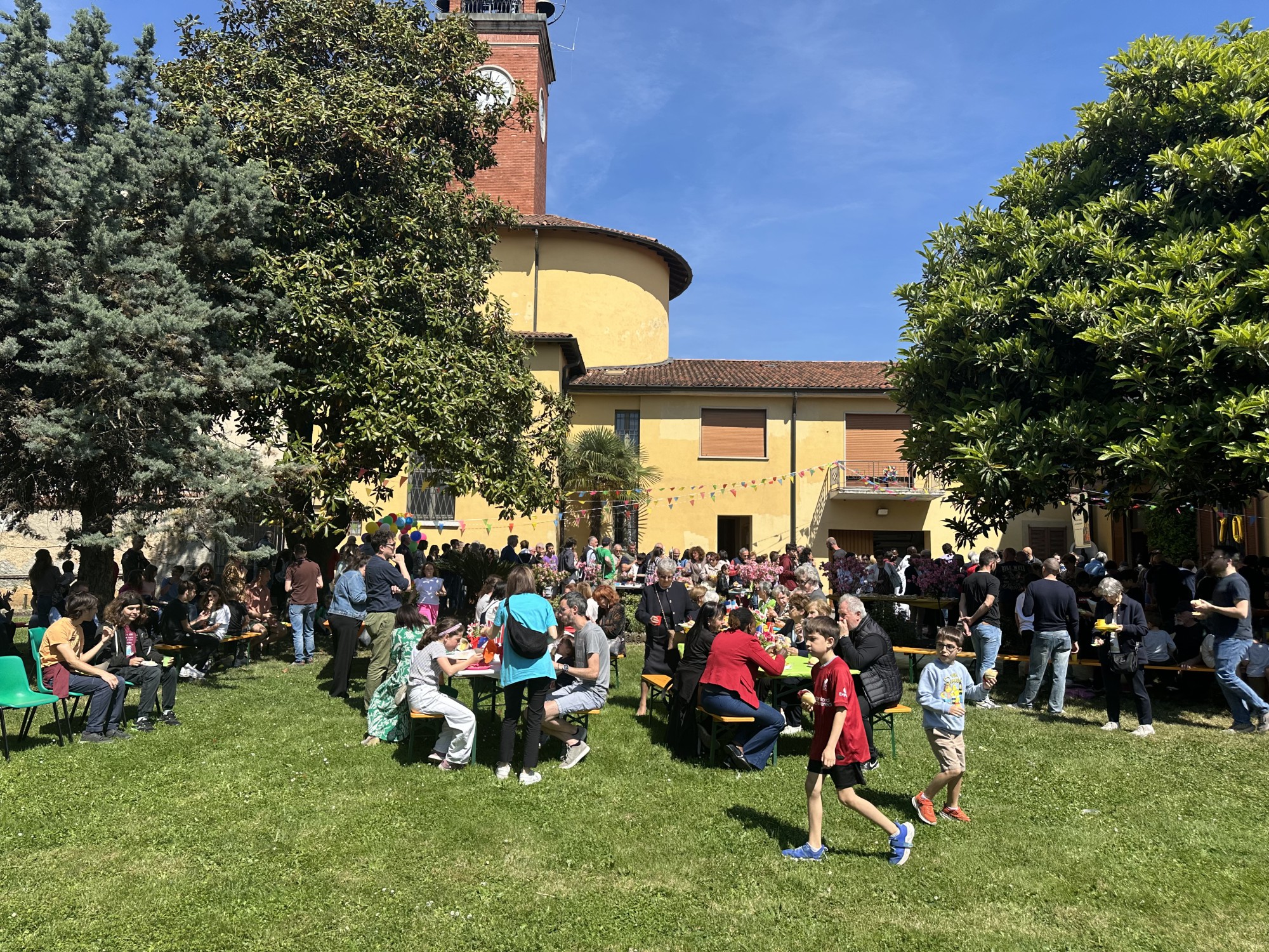 La mattinata è poi proseguita nel giardino della casa parrocchiale con un momento conviviale aperto a tutti, accompagnato dal taglio della torta per festeggiare i 70 anni di don Carlo Pirotta, salutato con auguri cantati in diverse lingue.