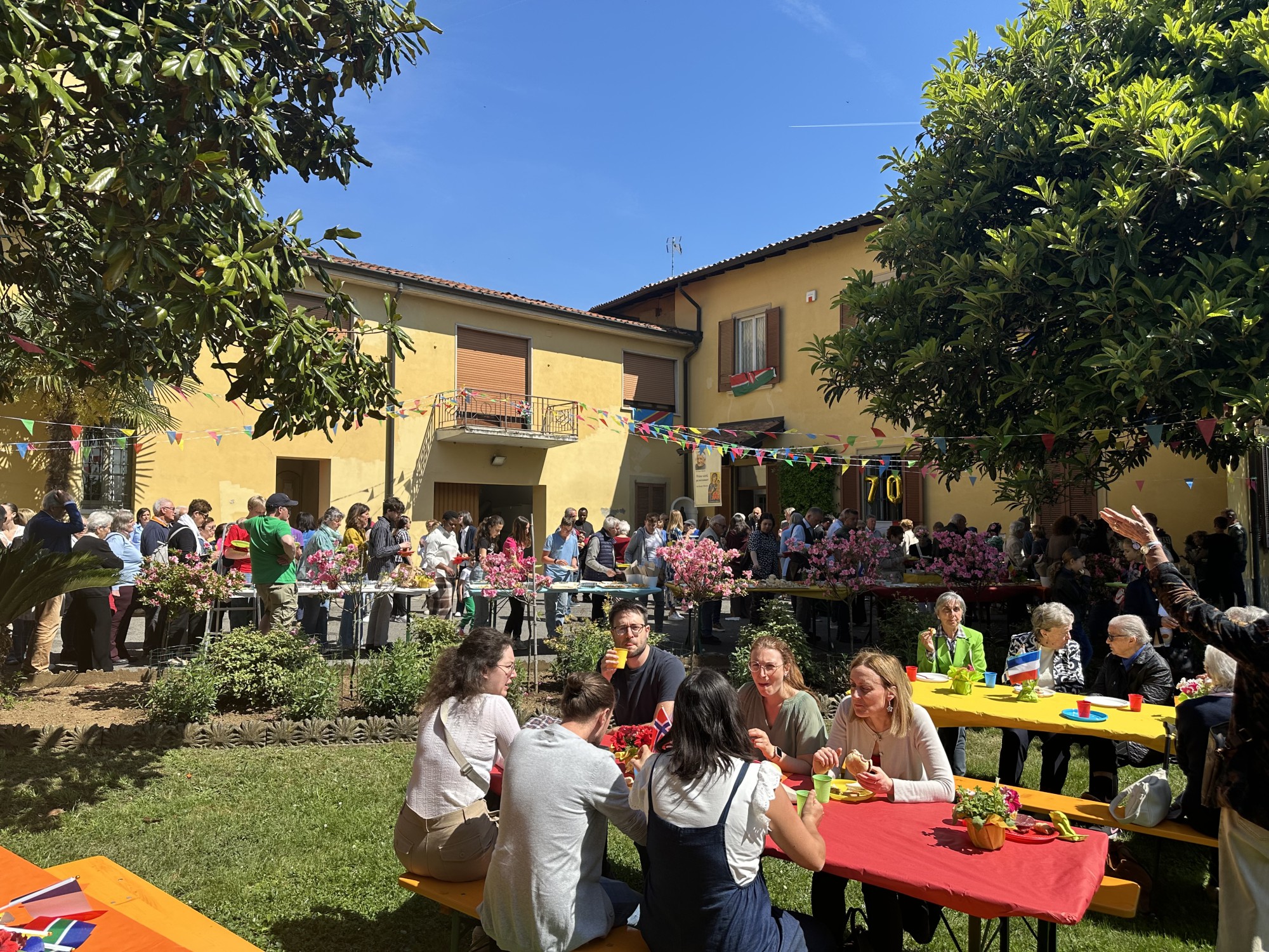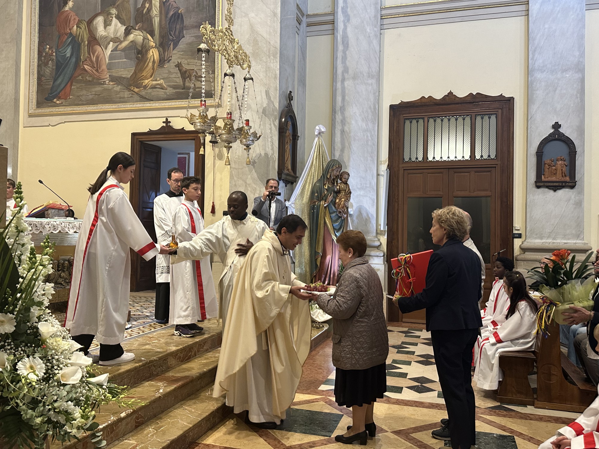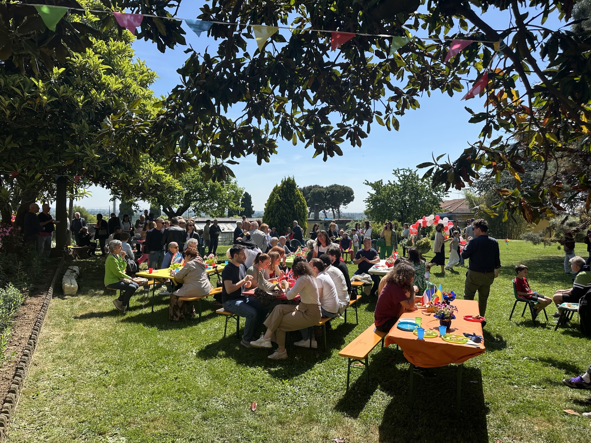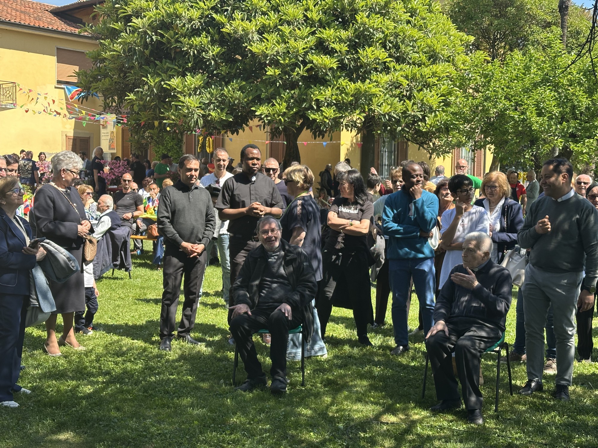 La mattinata è poi proseguita nel giardino della casa parrocchiale con un momento conviviale aperto a tutti, accompagnato dal taglio della torta per festeggiare i 70 anni di don Carlo Pirotta, salutato con auguri cantati in diverse lingue.
