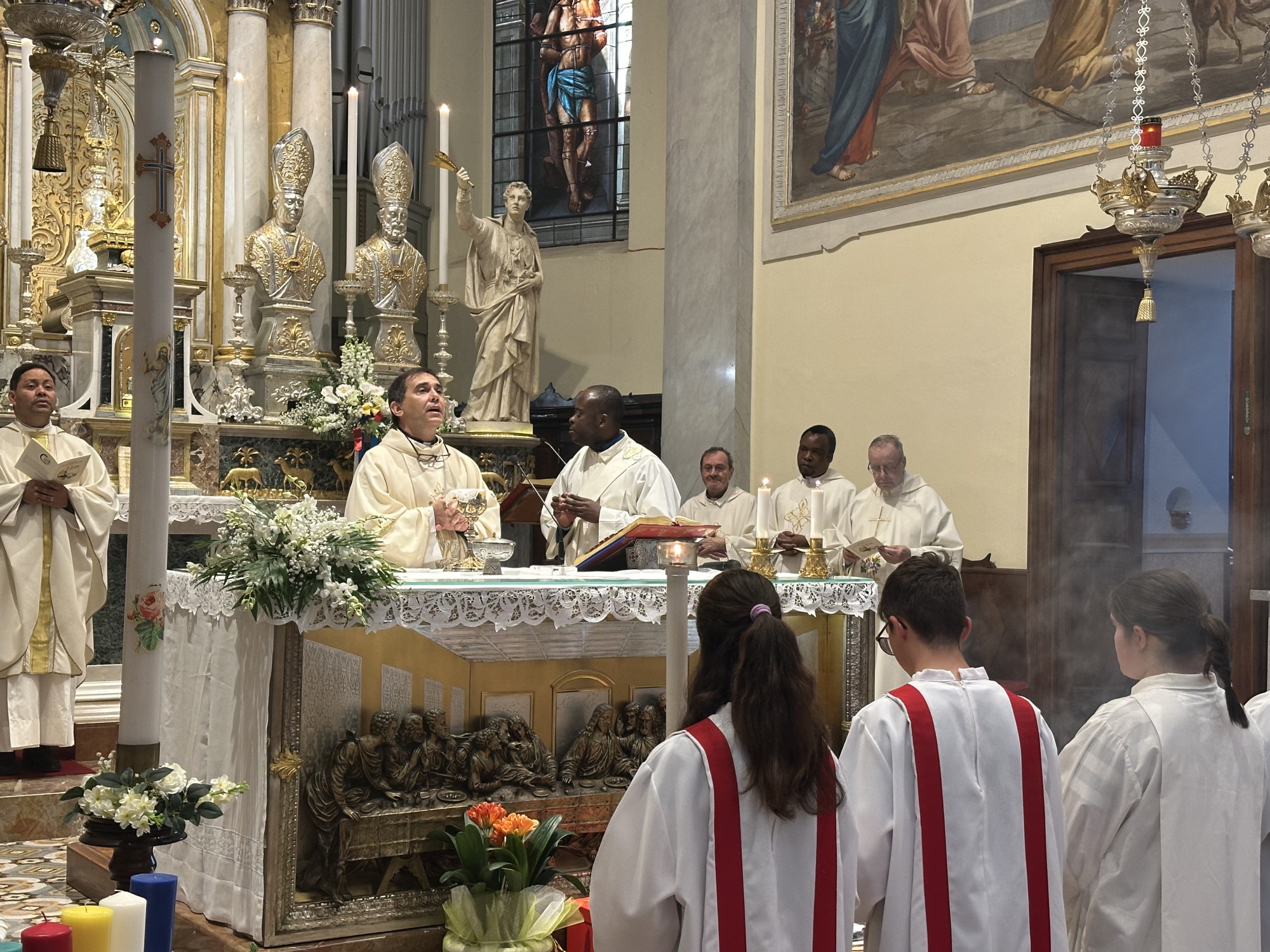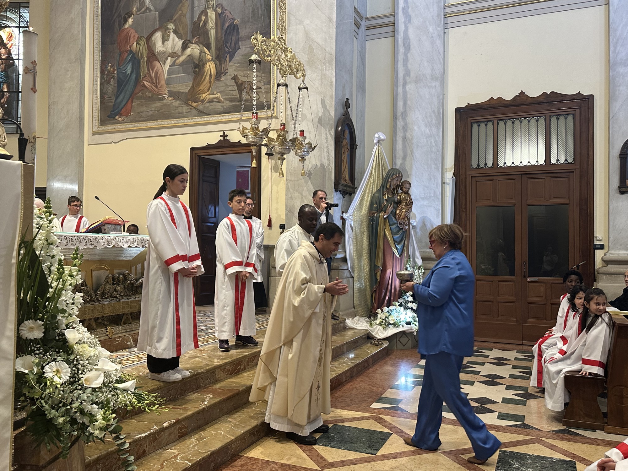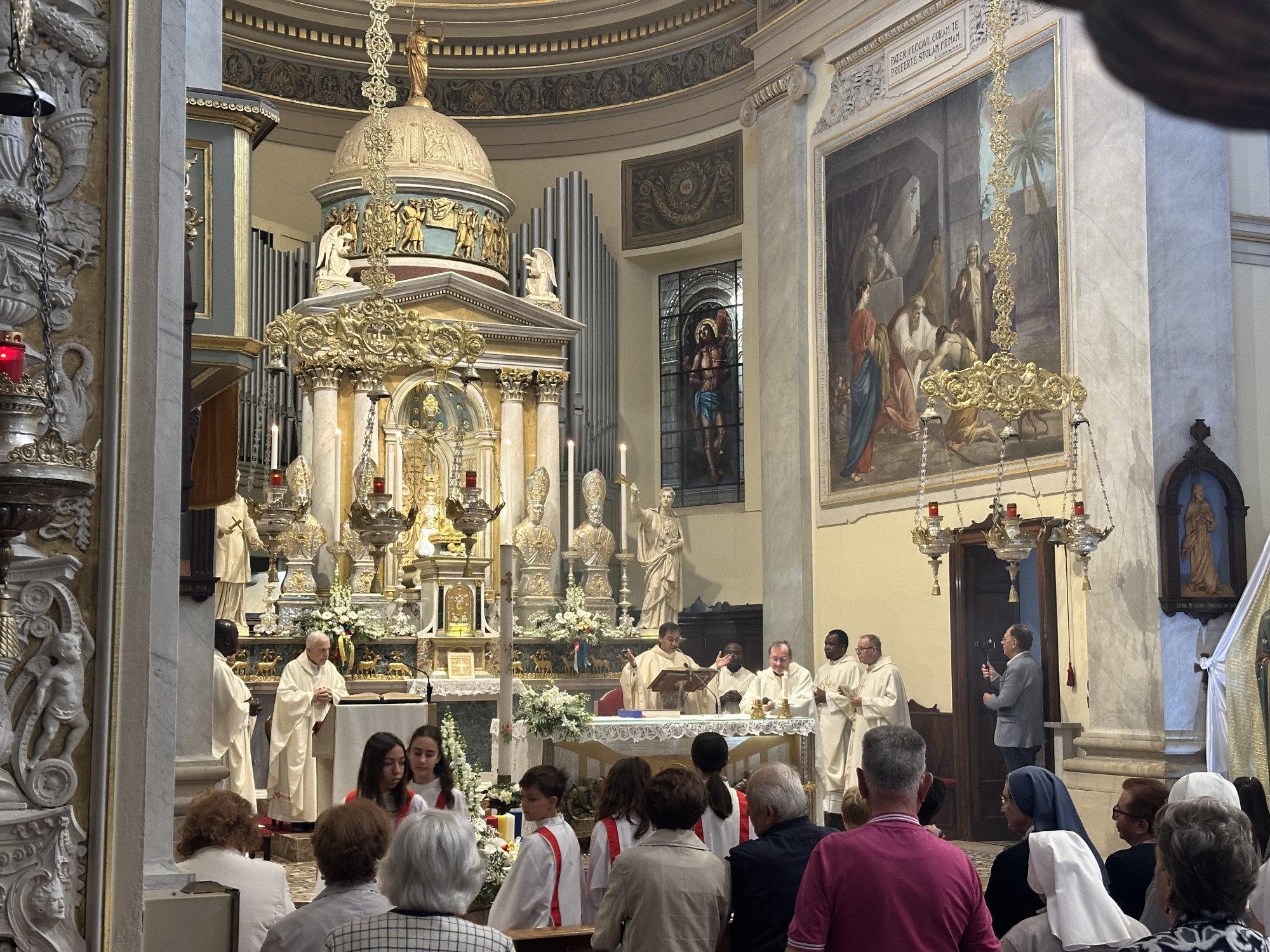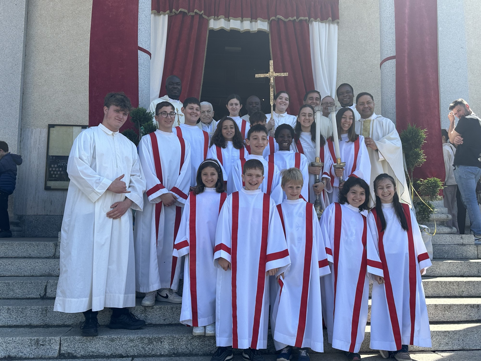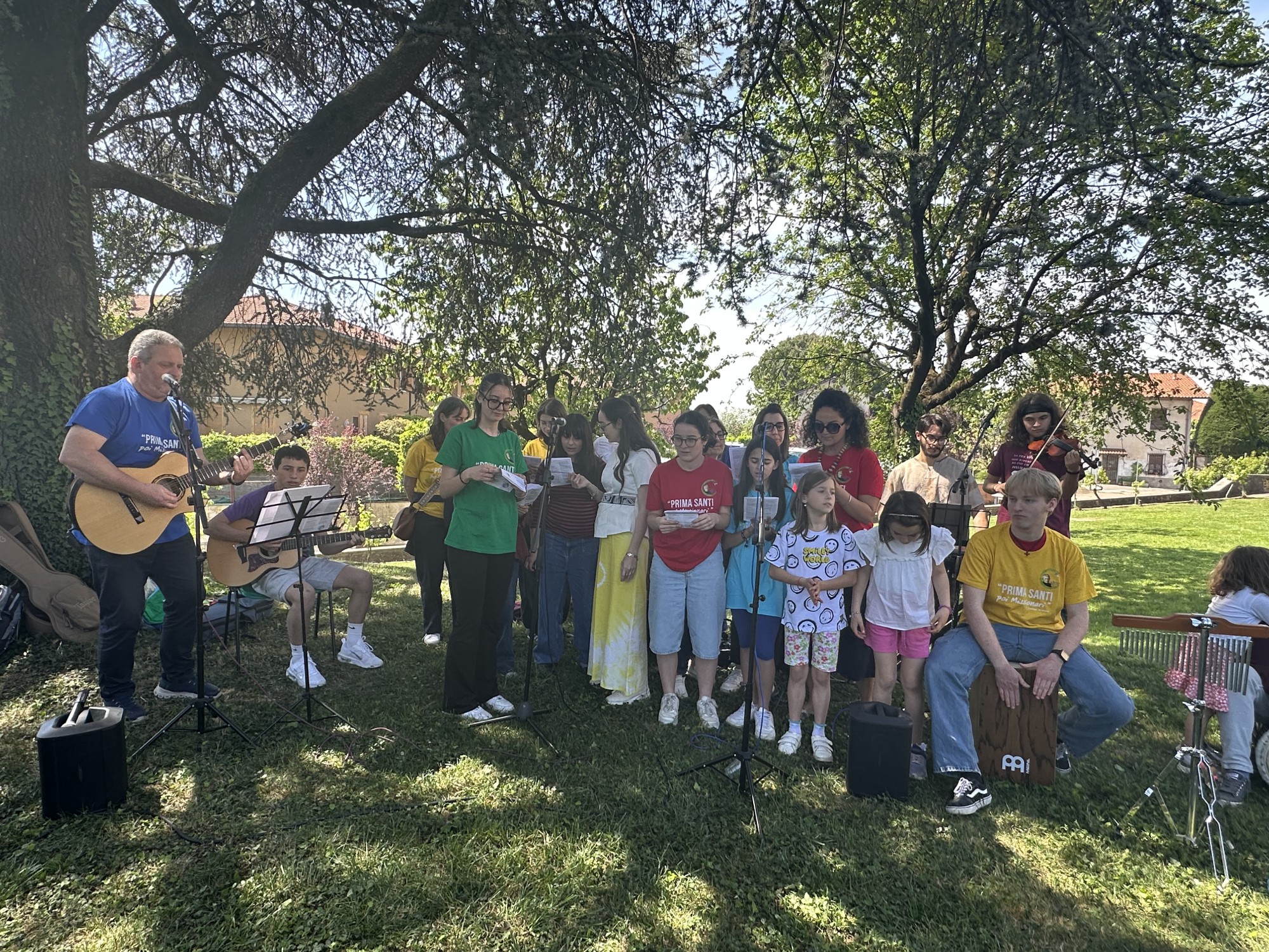 La mattinata è poi proseguita nel giardino della casa parrocchiale con un momento conviviale aperto a tutti, accompagnato dal taglio della torta per festeggiare i 70 anni di don Carlo Pirotta, salutato con auguri cantati in diverse lingue.