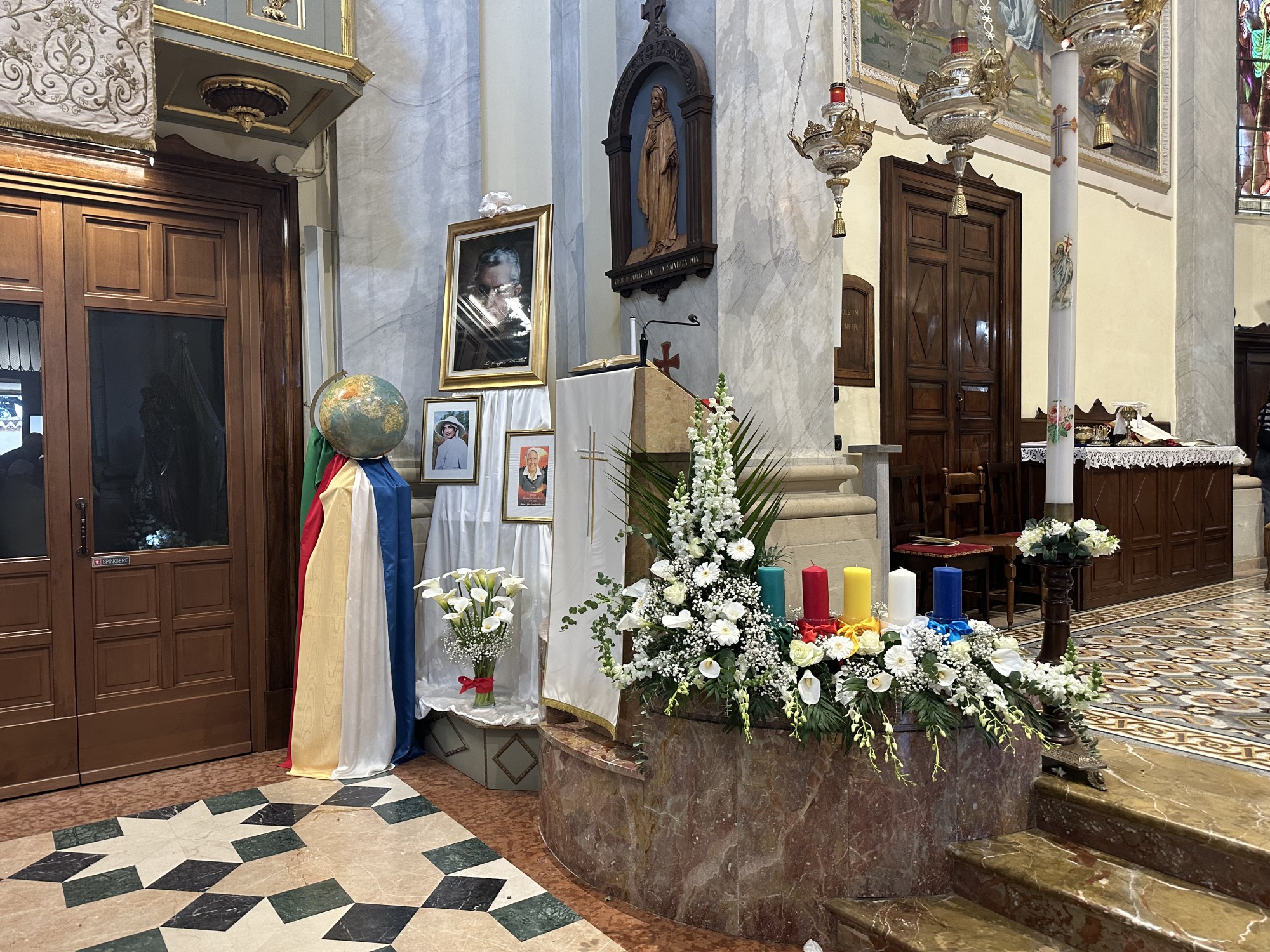 Di seguito le parole del consiglio pastorale parrochiale: ''Carissimi padre Danilo, padre Fredri, padre John, padre Cesarino e Diacono Joel. Il consiglio pastorale parrocchiale a nome dell'intera comunità desidera esprimere il proprio sentito ringraziamento al Signore per la vostra presenza in mezzo a noi. Dopo tante vicissitudini giungiamo finalmente a questo momento con animo riconoscente e colmo di gratitudine. Il percorso che ha condotto a questo incontro è stato impegnativo e in alcuni passaggi è anche difficile da comprendere segnato da dubbi e incertezze. Tuttavia, nella luce della fede riconosciamo che il Signore ha accompagnato ogni passo, sostenendoci con la sua promessa. Quando Dio è con noi, nulla può essere contro di noi. Quasi un secolo fa da questa nostra parrocchia numerosi missionari e missionari partirono verso terre lontana, allora inimmaginabili, mossi da una forza che non era semplicemente umana per annunciare la buona notizia a popoli e nazioni, dove Gesù non era ancora conosciuto. Partivano senza borse, senza denaro, ma con la profonda certezza di non essere soli: una forza misteriosa li accompagnava e li sosteneva nel cammino. Oggi, quei nostri fratelli e sorelle, nella comunione dei santi lodano Dio per la sua fedeltà: essi vedono ora compiersi la parola del Signore che non viene mai meno e che restituisce il centuplo a chi dona la propria vita per amore. Carissimi, come figli spirituali dei nostri zii e delle nostre zie, siete oggi tra noi a testimoniare che Dio è fedele alla sua promessa e che nulla di ciò che ha affidato a Lui va perduto la vostra presenza rende visibile la continuità di una storia di fede che ancora oggi porta frutto. A ciascuno di voi esprimiamo il nostro sincero ringraziamento per la disponibilità e per il dono della vostra testimonianza missionaria. Affidiamo ora il Signore e la nostra comunità e il cammino che ci attende insieme chiedendo che ci doni quella forza che la Chiesa chiama Spirito Santo affinché possiamo testimoniare, anche in questa nostra terra secolarizzata, che Gesù ci ama senza condizioni. Il suo amore gratuito offerto a tutti a ciascuno di noi affidata la libertà e la responsabilità di accogliere questa grazia. Nel rinnovare il nostro più cordiale benvenuto vi assicuriamo la nostra preghiera e la nostra vicinanza affidando a ciascuno di voi la benedizione del Signore''.