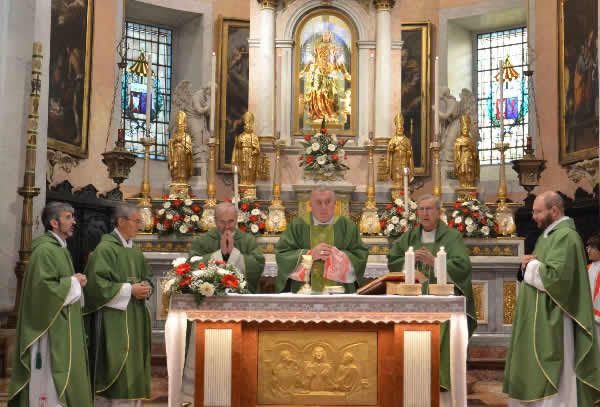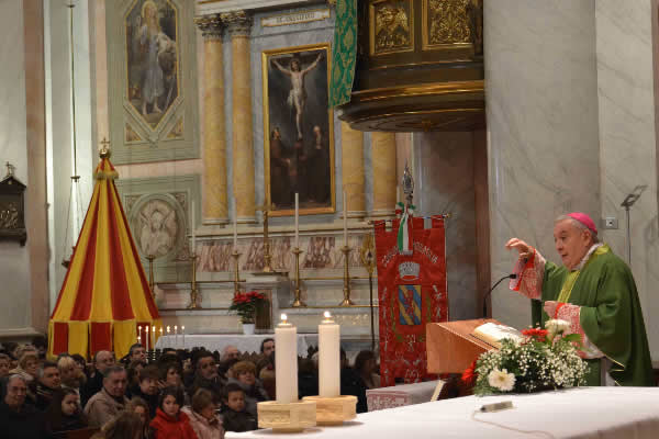 Presenti alla messa celebrata alle ore 10 in basilica, le autorità civili e una gran folla di fedeli, che la basilica faticava a contenere.
