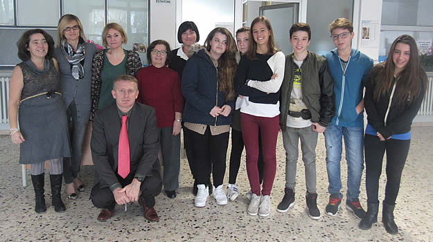 Il dirigente scolastico prof. Dario Maria Crippa con insegnanti e alunni